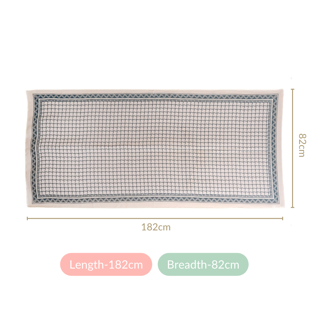 This green wavy checkered printed summer scarf is a symbol of style and comfort due to its meticulous craftsmanship and premium-quality fabric. Crafted with a soft, skin-friendly feel, this scarf's distinctive wavy checkered pattern in refreshing green against a white backdrop reflects a blend of fashion and functionality. It adds a touch of elegance to any outfit while ensuring comfort.