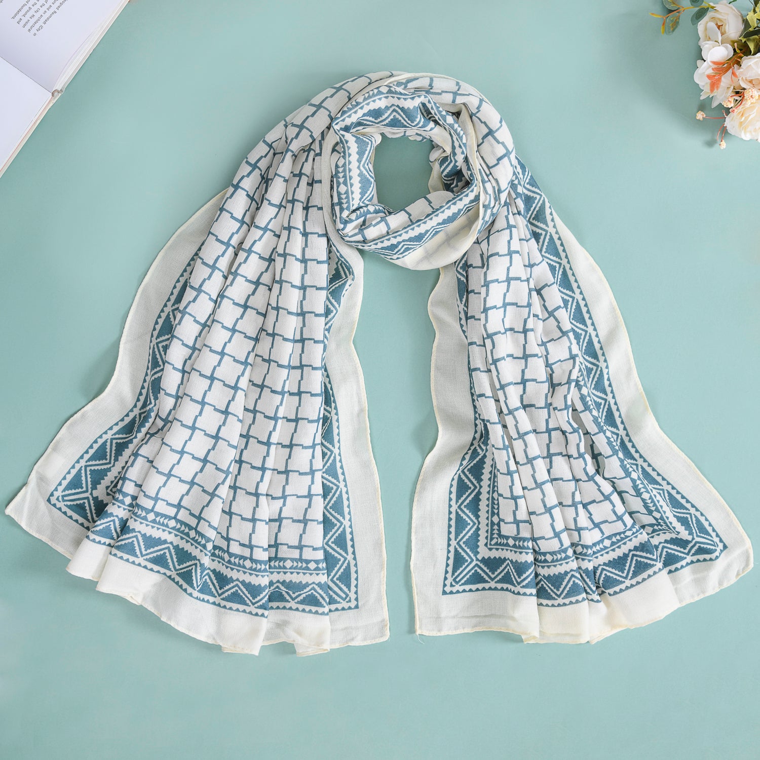 The possibilities for styling this scarf are endless. You can drape it over your shoulders for a classic look, knot it as an accessory, or wear it as a headscarf for a trendy touch. It can be worn with casual or formal outfits, adding a pop of style and color. The unique green wavy checkered pattern offers a distinctive flair to any ensemble.