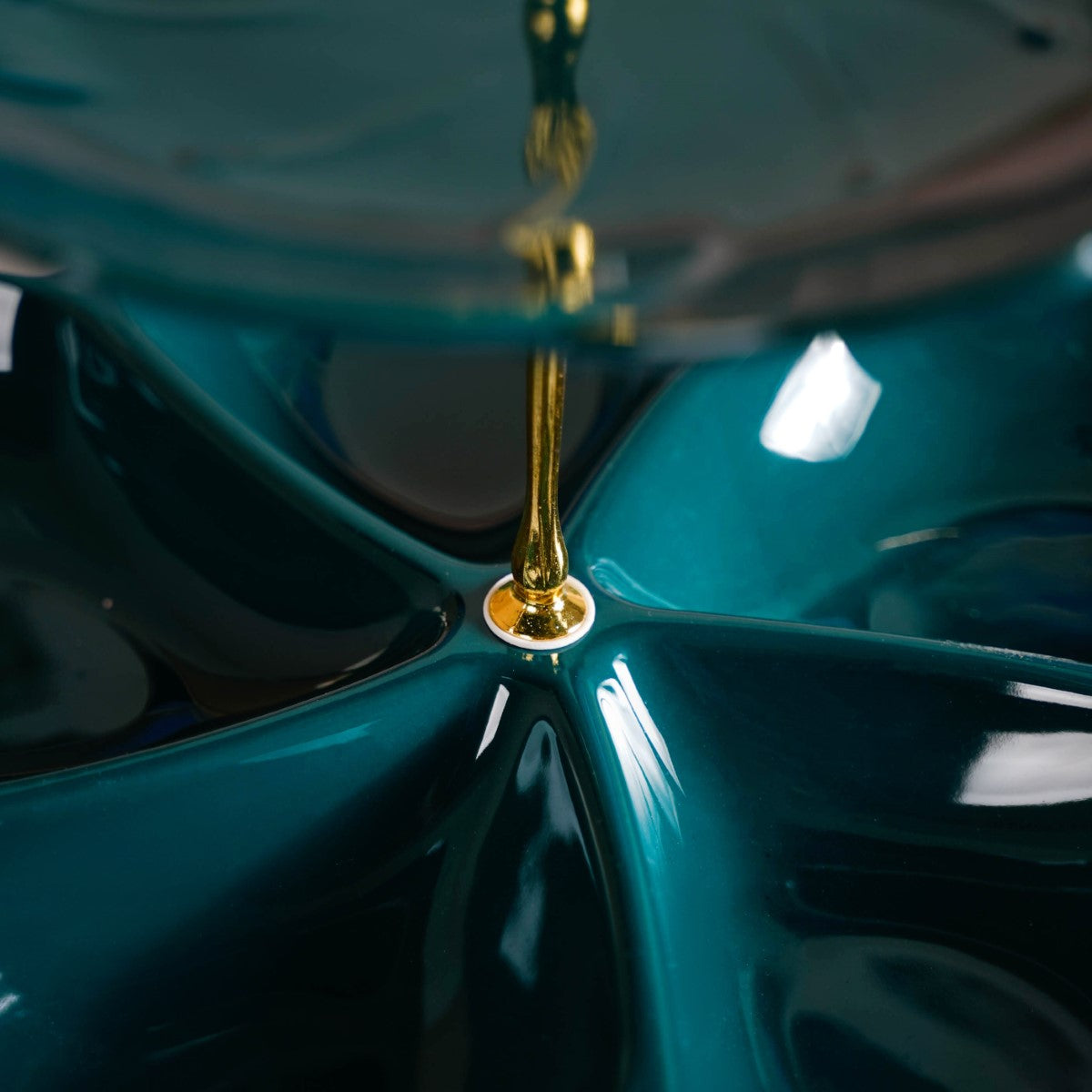 Sanya Datt Teal Tantrum Flower 3-tier Snack Stand