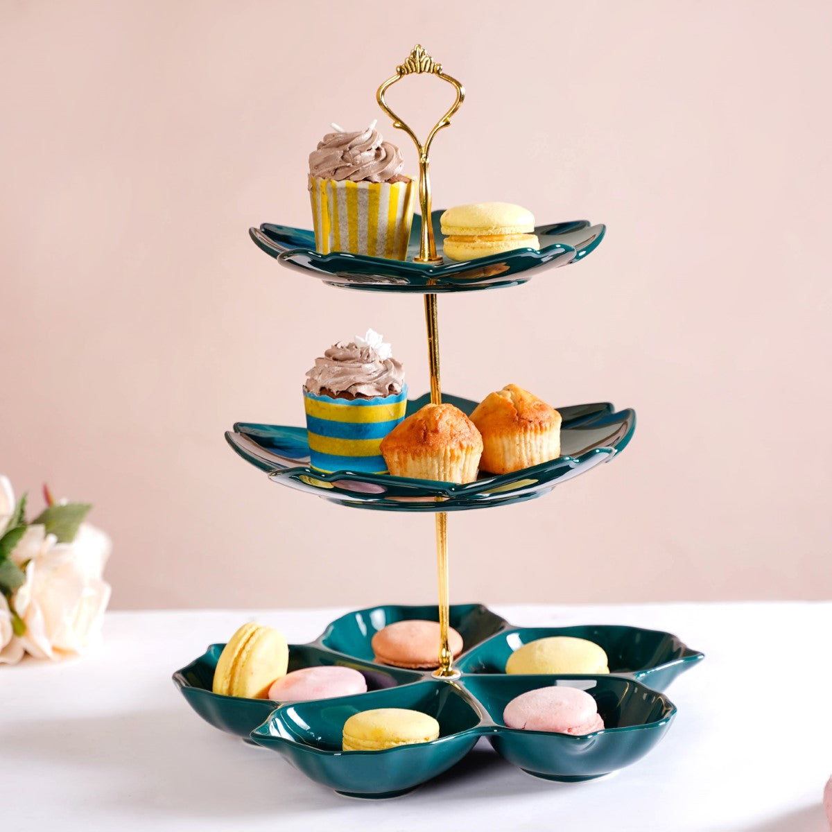 Sumita Bhardwaj Teal Tantrum Flower 3-tier Snack Stand