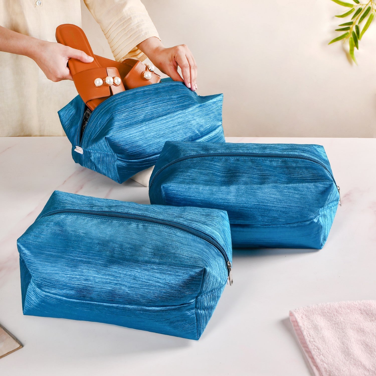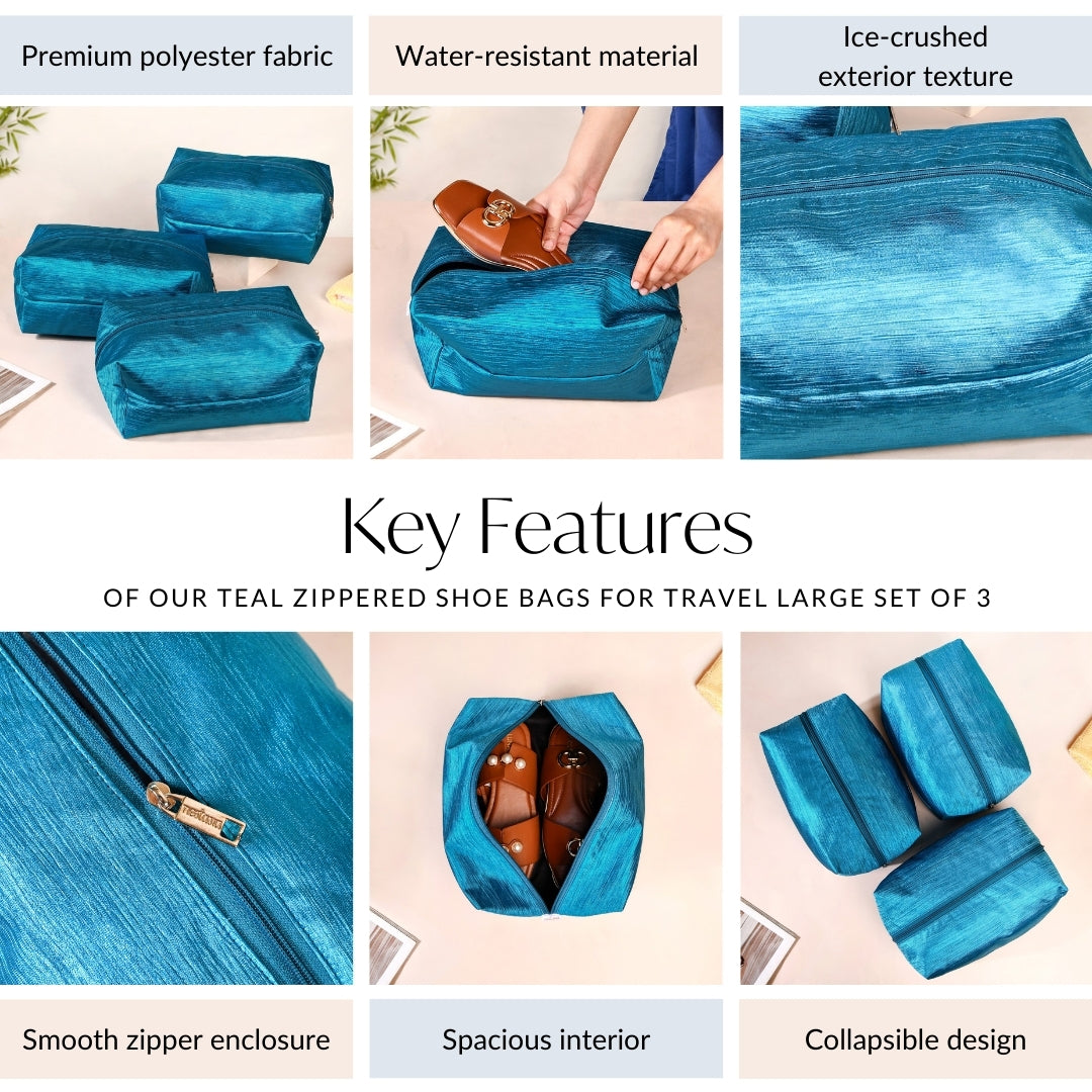 Teal Zippered Shoe Bags For Travel Large Set Of 3