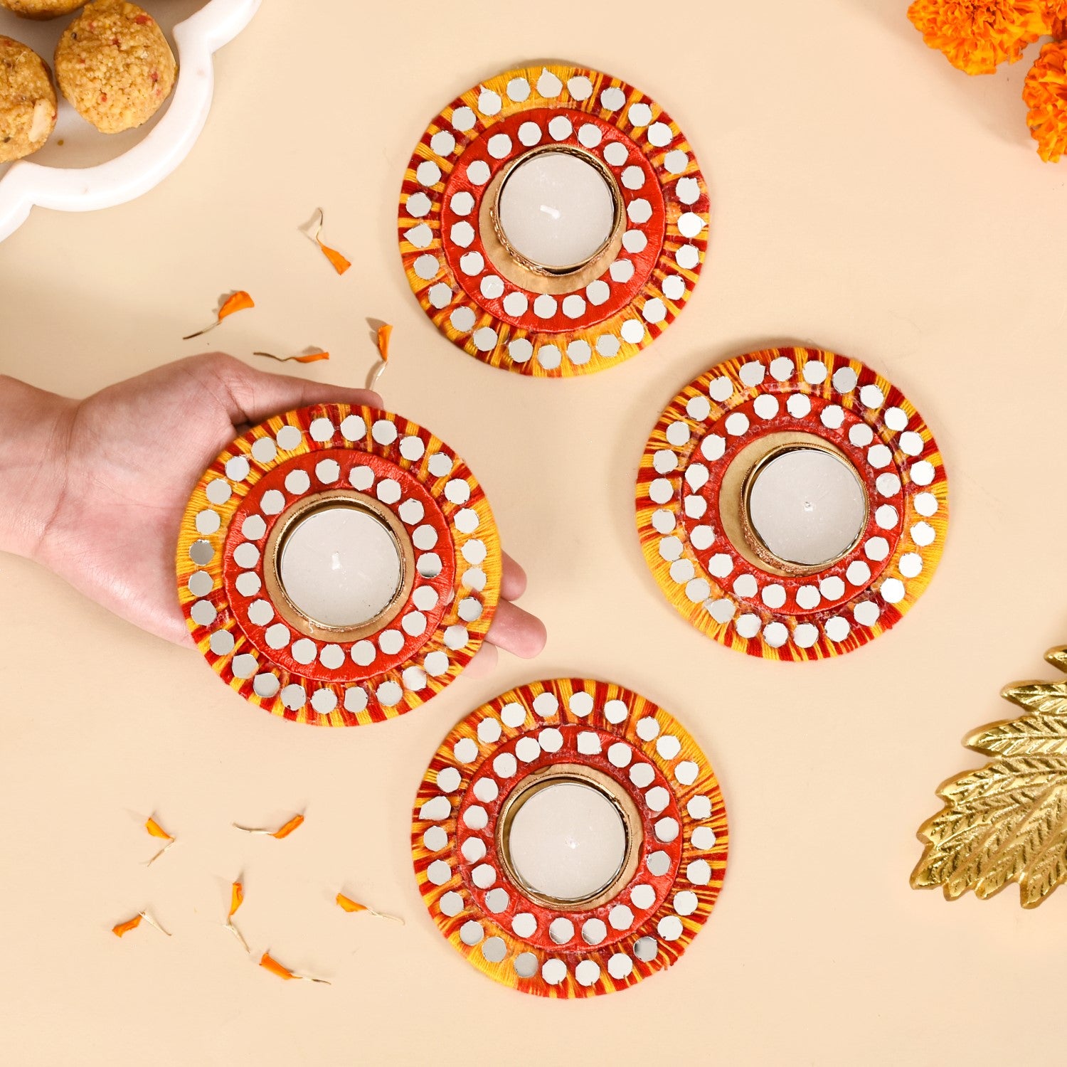 Tealight Candle Holders With Thread And Mirrorwork Set Of 4