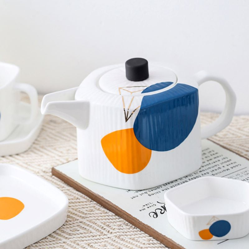 Nestip: The cup of tea and the tea pot can be paired with the small plates to serve cookies and biscuits