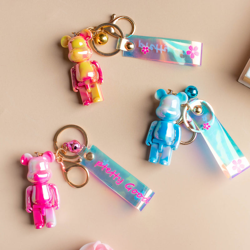 The bear keychain is a popular and fashionable bag decor accessory that can be buckled onto the car keys, backpack, and clutches. The keychain will look brilliant on any kind of luggage and make the focus of attention even on one's study table or Christmas tree. The keyrings are made to be gifted to one's loved ones and are easy to clean and sturdy in built. The keychains are available for purchase in three colors- blue, pink, and yellow and might be gifted as return gifts for a children's party. The keychain is made of high-quality, ecologically friendly silicone and is suitable for a variety of occasions, including birthdays, anniversaries, Thanksgiving, Christmas, and other holidays. The keychain's soft silicone composition provides it with a smooth, comfortable, and odor-free surface. Nestip: The teddy bear keychain would make a most adorable present for a loved one! Size: 4cm L x 19cm B Color: Yellow, pink, and blue Material: Silicone, metal Products included: 1 keychain Style:Yellow- YYT42S27 Pink- YYT42S28 Blue- YYT42S29
