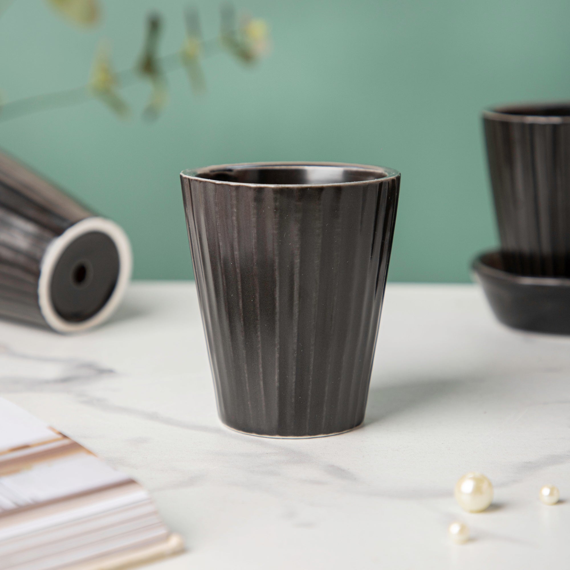 Ternion Ribbed Planter Set Of 3 Black With Plate