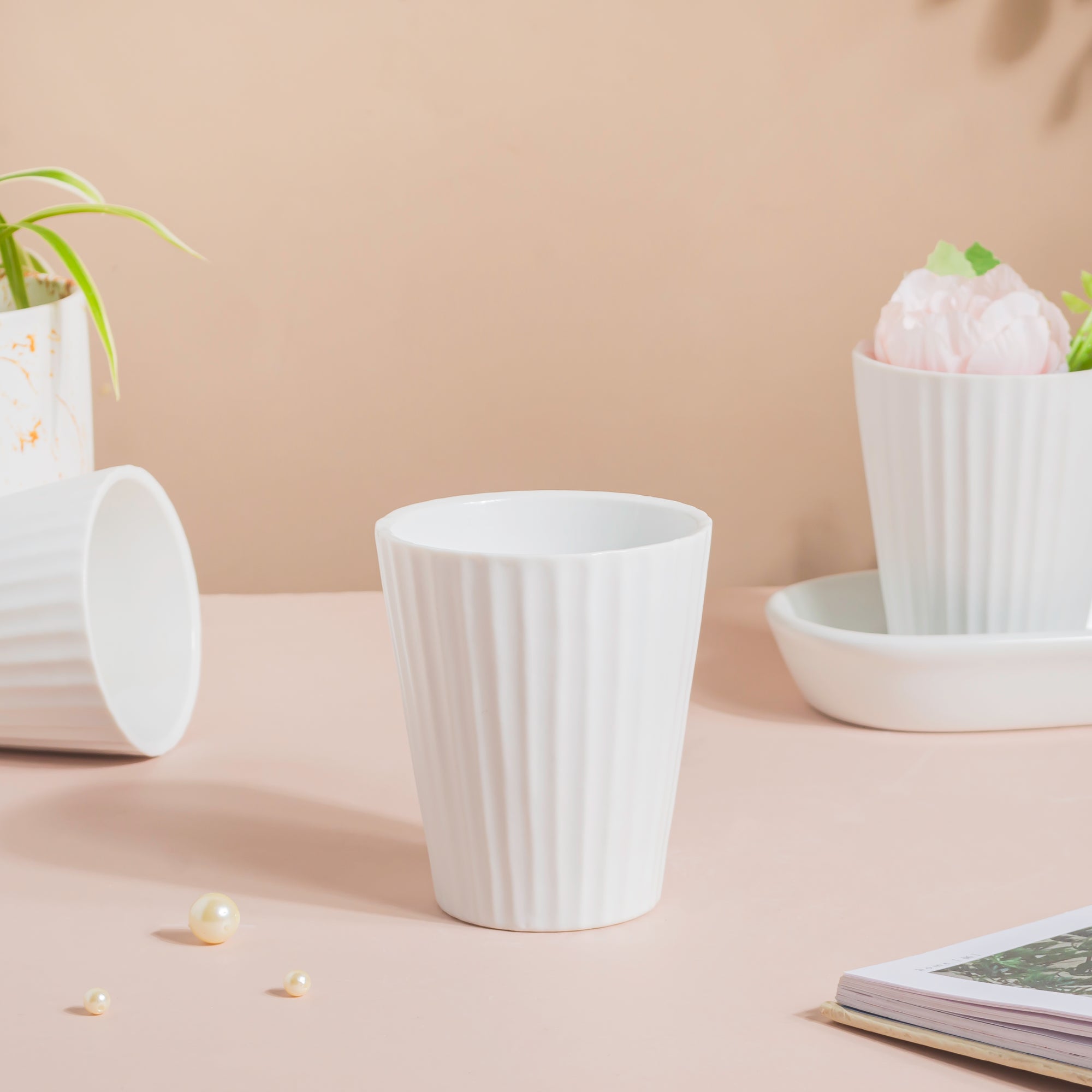 Ternion Ribbed Planter Set Of 3 With Plate White