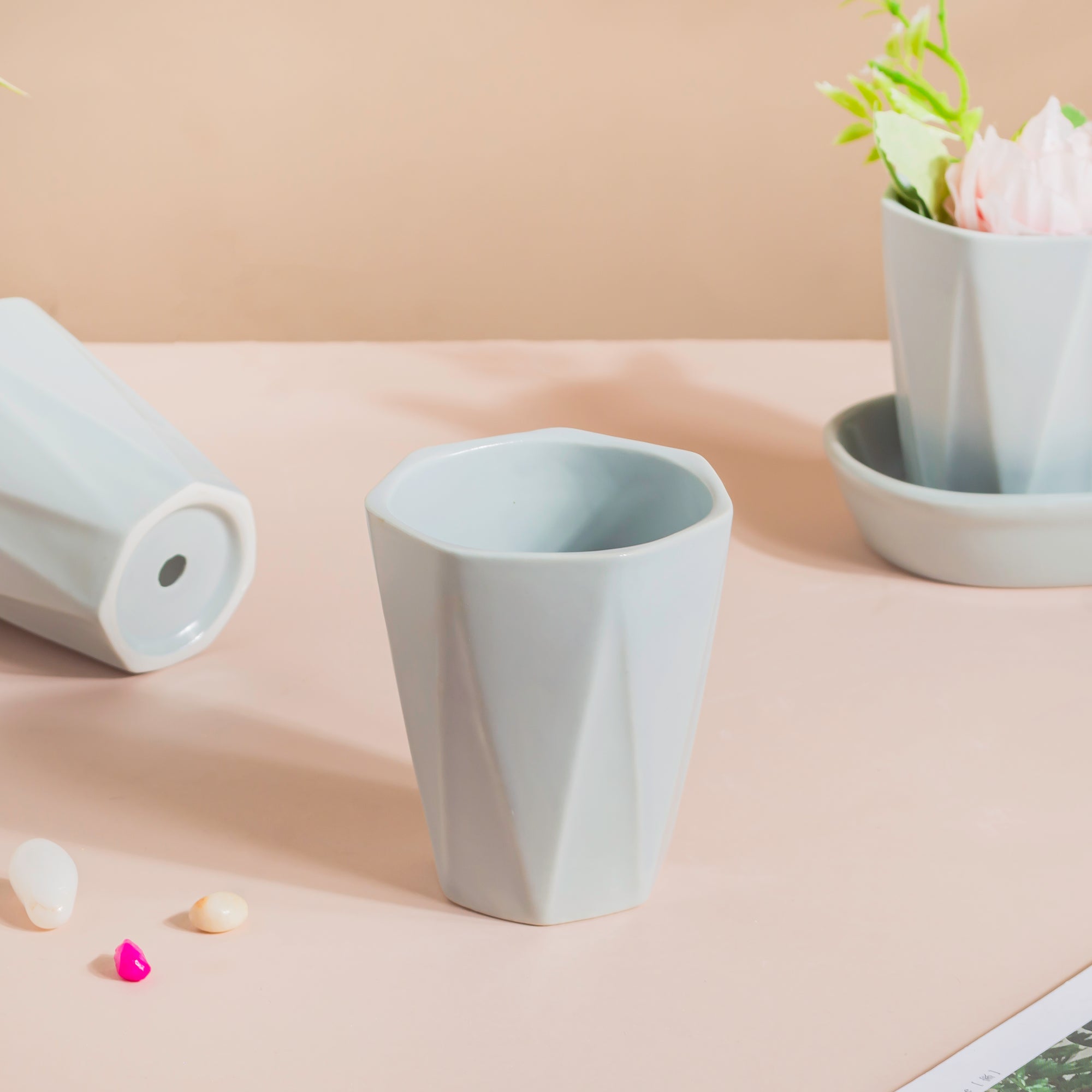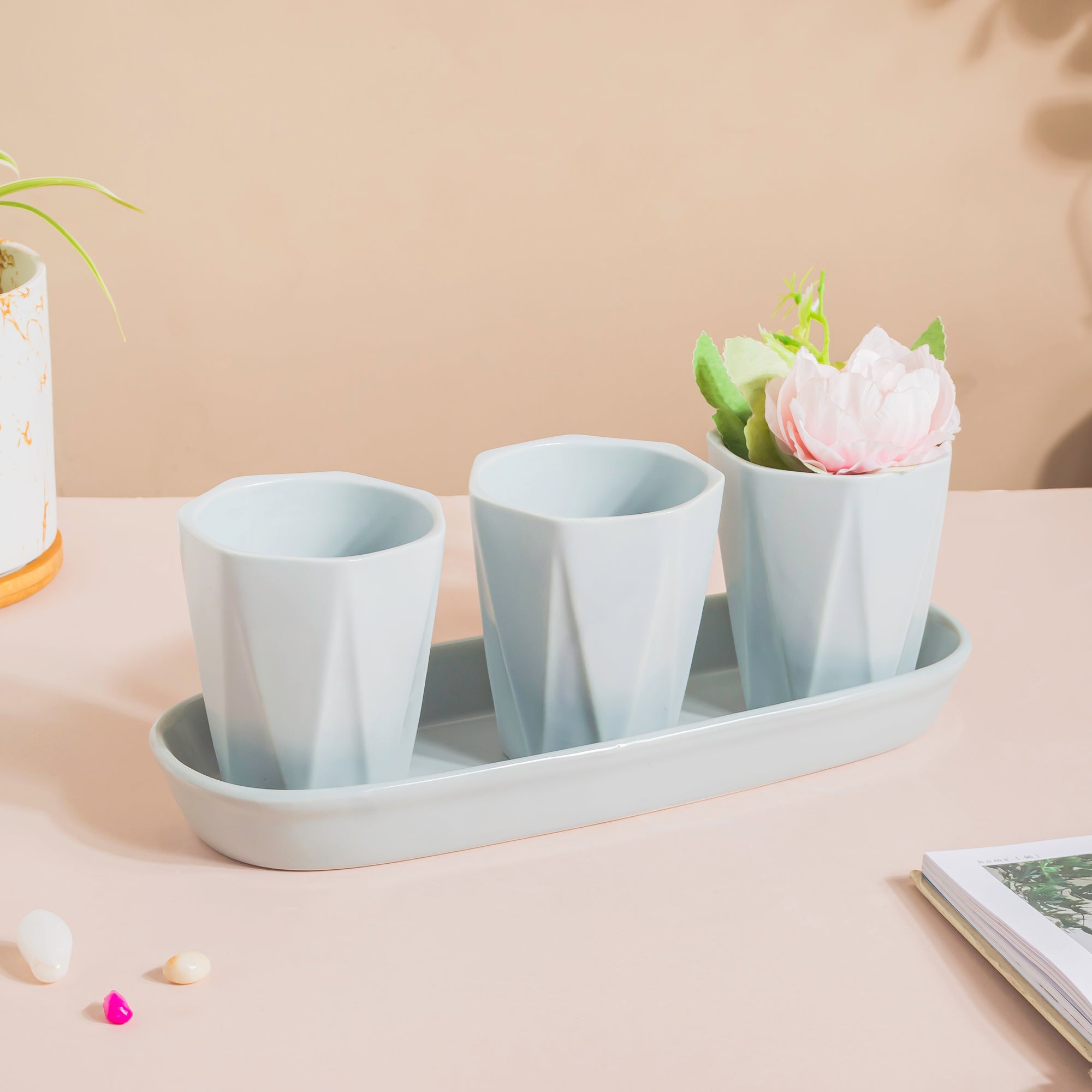 Products included: 1 set of 3 planters and 1 long plate