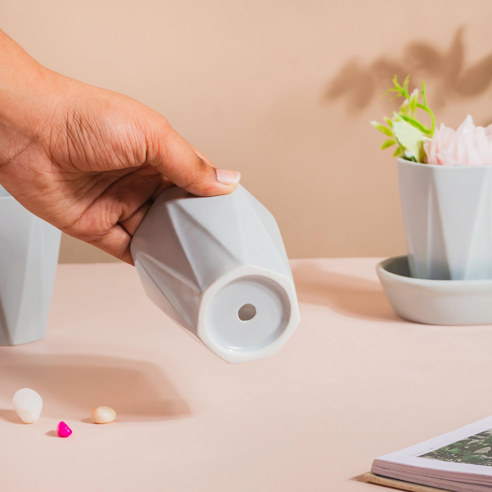 Nestip: Place faux succulents into the planter along with colourful marbles for an exquisite housewarming present.