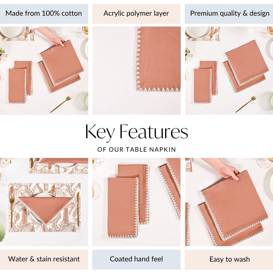 Terracotta Embroidered Edges Table Napkin Set Of 4