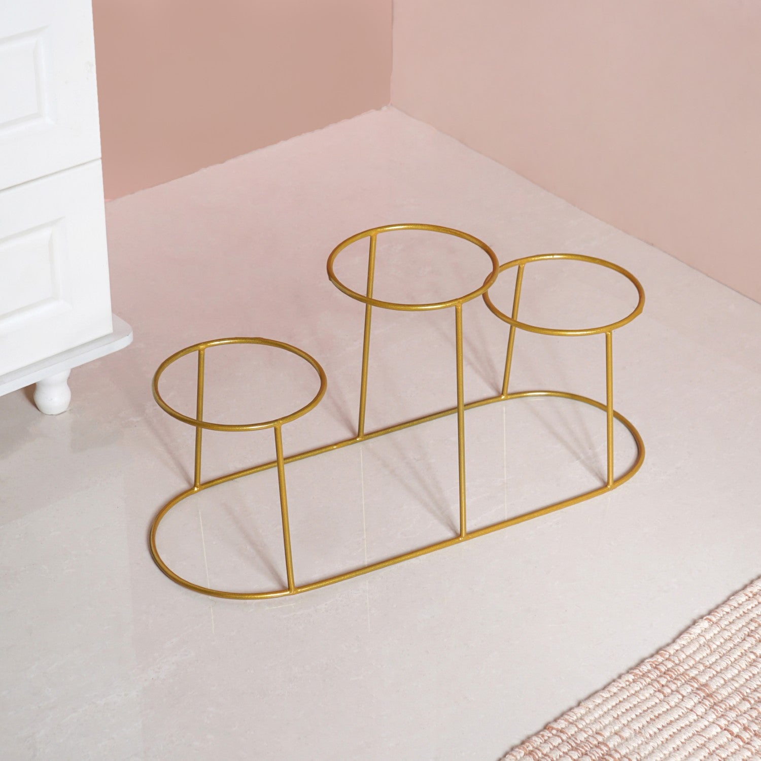 Benefits: Designed for compact living, this planter set maximises visual impact while conserving surface area. The sturdy gold ring holders keep each pot securely in place, and the wide oval base ensures balance and prevents tipping. Made from durable metal with a gold finish, the stand remains brilliant over time. The breathable terracotta pots encourage healthy root growth and include drainage holes to prevent overwatering. Lightweight yet steady, the set is easy to reposition and ideal for rearranging your space according to your mood.