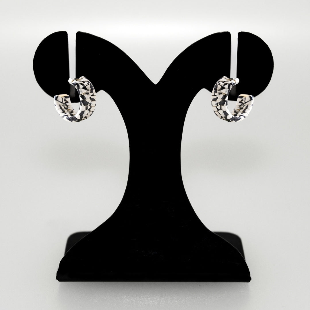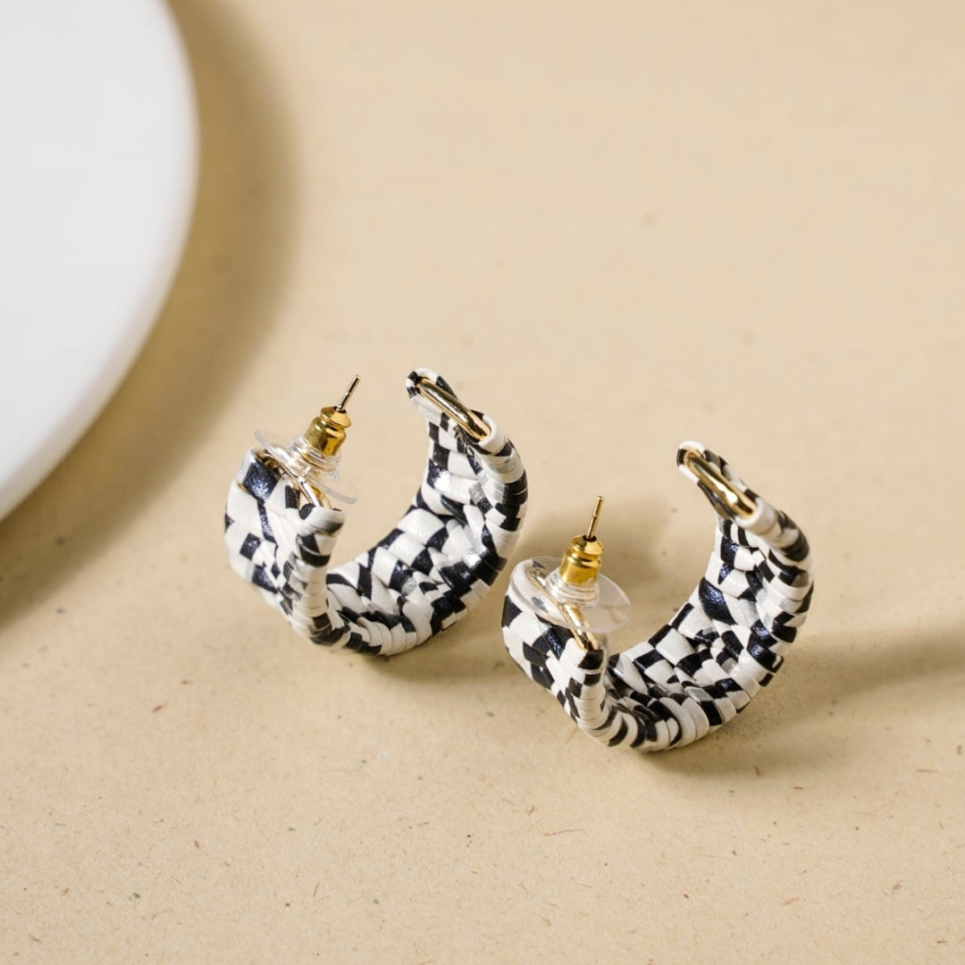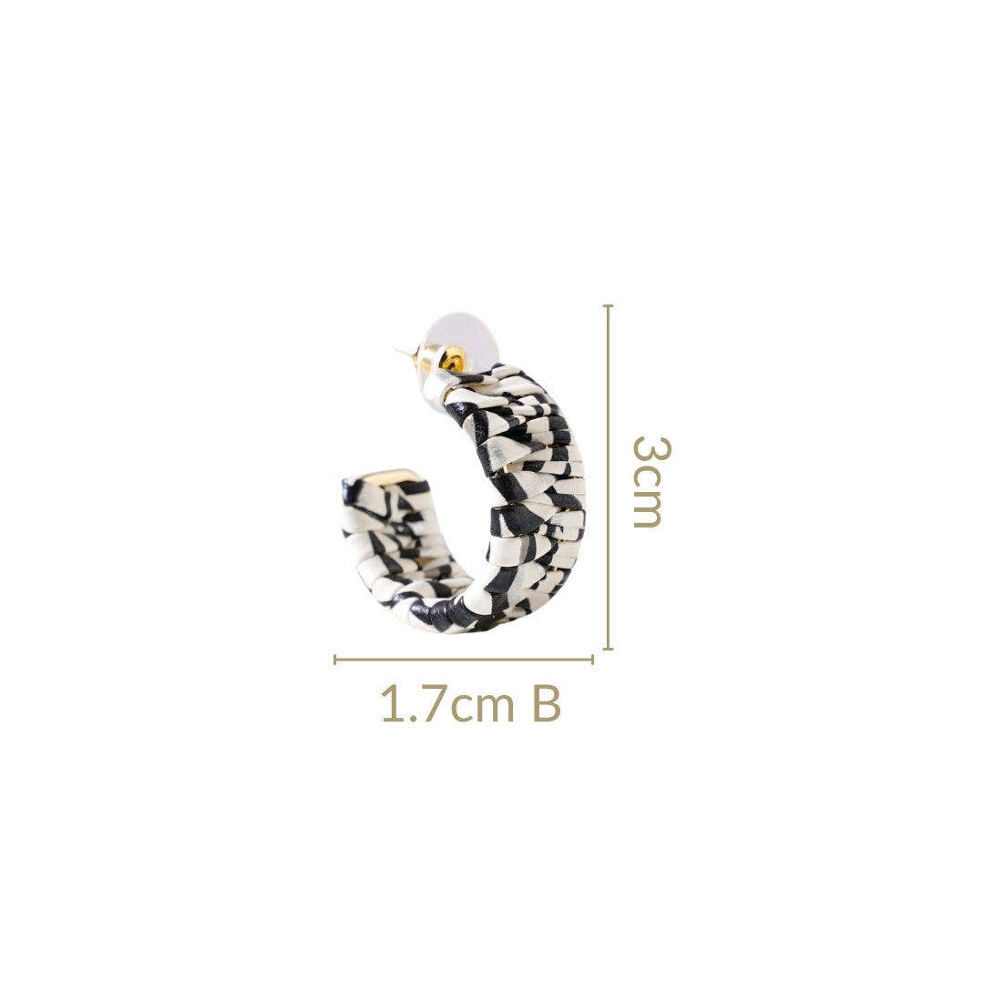 This earring offers a bold and contemporary twist on a classic hoop design. Made from high-quality PU leather, this earring features a striking white and black pattern that adds a dynamic, edgy touch to any outfit. Lightweight and stylish, the monochrome hoop earring is a perfect accessory for both casual and evening looks. The design is inspired by the sleek contrast of urban street style - they seamlessly blend versatility and modern flair.