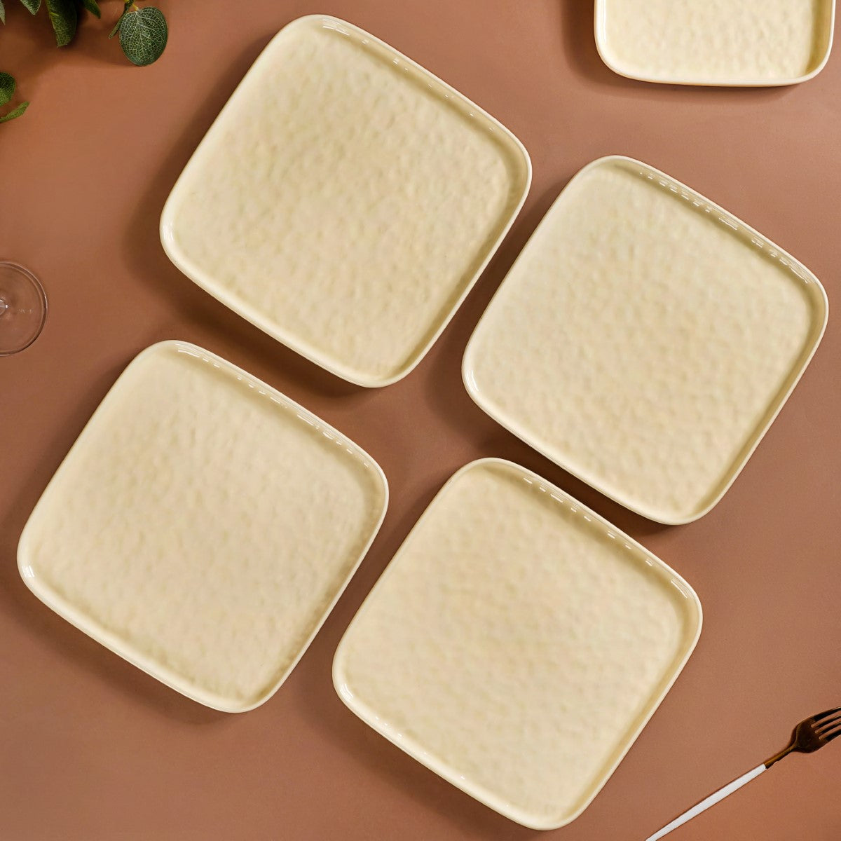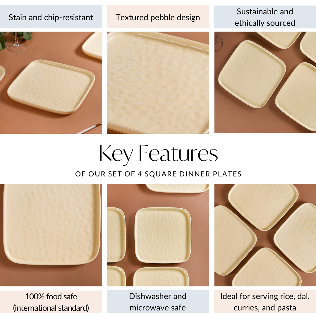 Textured Ceramic Square Dinner Plate Vanilla White Set Of 4 10 Inch