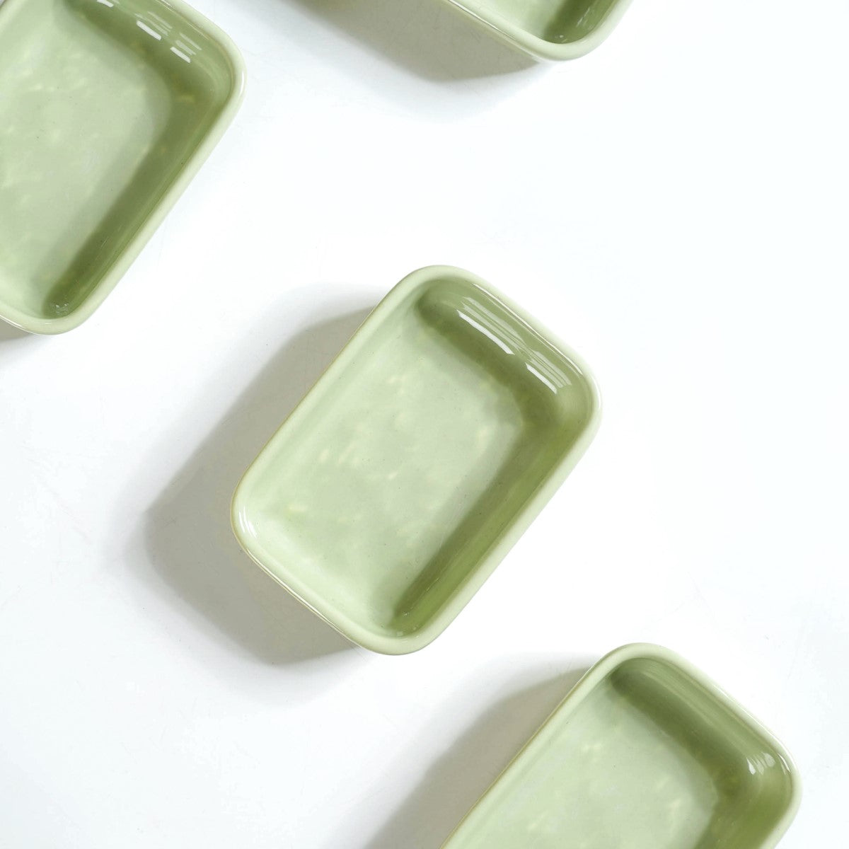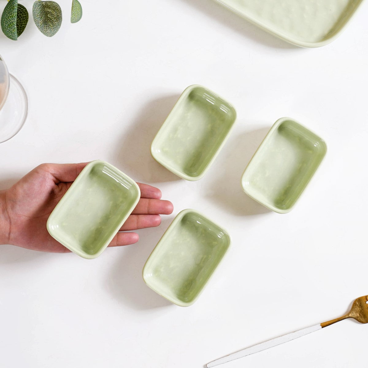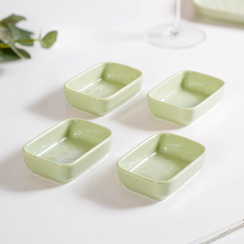 Elevate your entertaining experience with our vibrant set of 4 mint-coloured dip bowls, crafted with meticulous attention to detail for both functionality and style. Made from non-porous ceramic, these bowls are not only stackable for convenient storage but also dishwasher-safe for effortless cleanup. Versatile in nature, these dip bowls are microwave-proof, ensuring your dips stay warm while maintaining their flavour profile. Say goodbye to lingering odours as these bowls don't absorb any scents, and rest assured, they are stain and chip-resistant, ensuring longevity. Adorned with a charming textured pebble design and hand-glazed surface, each bowl is a unique piece of art. Furthermore, our commitment to sustainability shines through, as these bowls are ethically sourced, non-toxic, and BPA-free, meeting international food safety standards. Ideal for serving a variety of dips, from creamy hummus to zesty salsa, these mint-coloured bowls are a must-have addition to your dinnerware collection, promising both functionality and aesthetics.