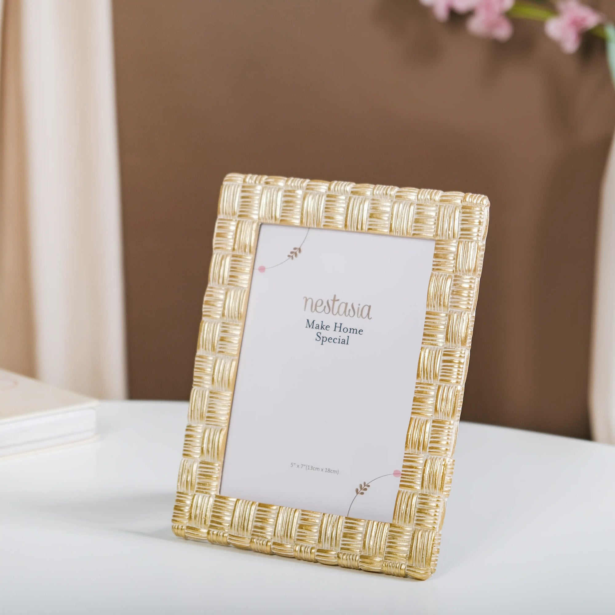 Cleaning and maintaining the woven straw-like texture of the frame is simple. Use a soft, dry brush or cloth to gently remove dust and debris from the textured surface. For deeper cleaning, lightly dampen a soft cloth with water and gently wipe the texture. Avoid using harsh chemicals or abrasive materials that could damage the texture or finish. After cleaning, ensure the frame is completely dry before placing it back on display. Regular dusting and gentle cleaning will help preserve the intricate woven texture and ensure your frame continues to captivate with its timeless allure.