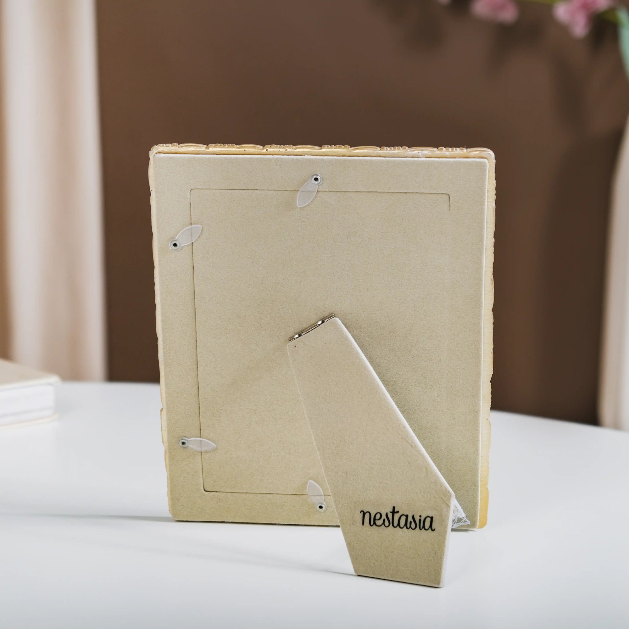 The intricately woven straw-like texture of the photo frame offers a touch of rustic charm that blends in nicely with contemporary interior designs. It offers a distinctive contrast between luxury and simplicity, producing an alluring aesthetic dynamic.
