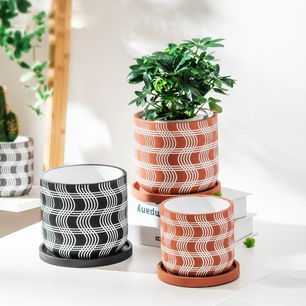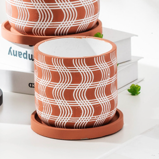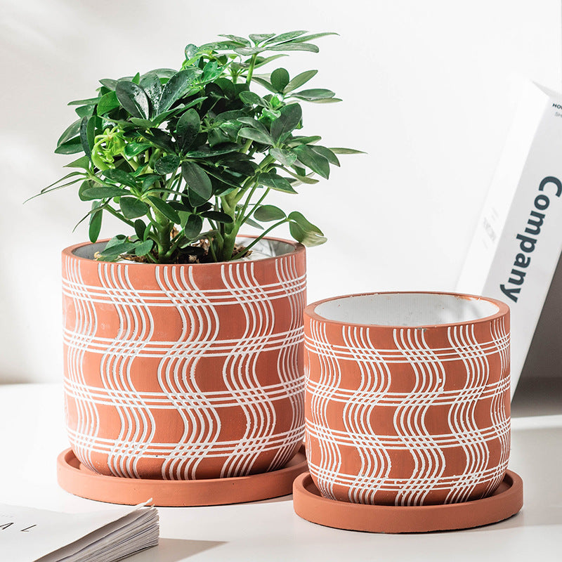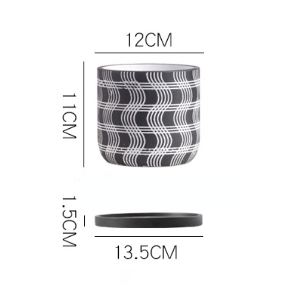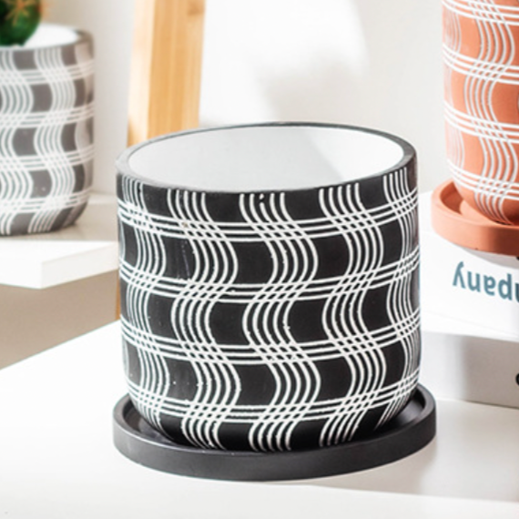 The round ceramic plant pot with contrasting patterns lend an artistic finish to the pot. There's a hole at the base of the round pot to drain the excess water from the soil. The flower pot comes with a base plate to prevent the spillage of water into the floor mats or carpets. The ceramic vase is available in shades of orange and black, and are a great addition to the home. Pair both the pots together to complete the look of the space.