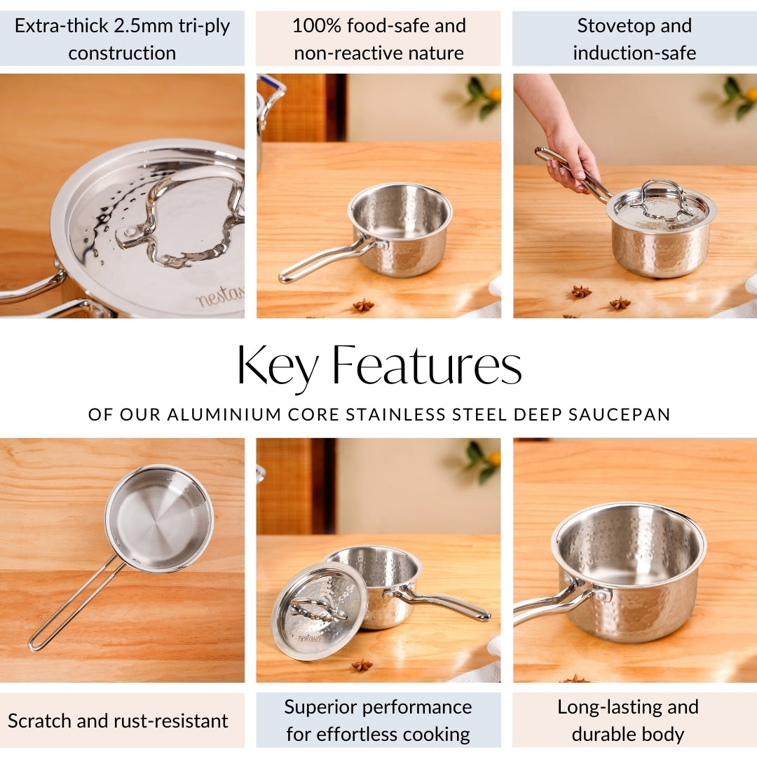 Yes, this tri-ply saucepan is perfect for boiling milk or heating baby food. Its food-safe and non-reactive inner layer, made of 304-grade stainless steel, ensures purity and preserves nutrients, making it a safe choice for the whole family.