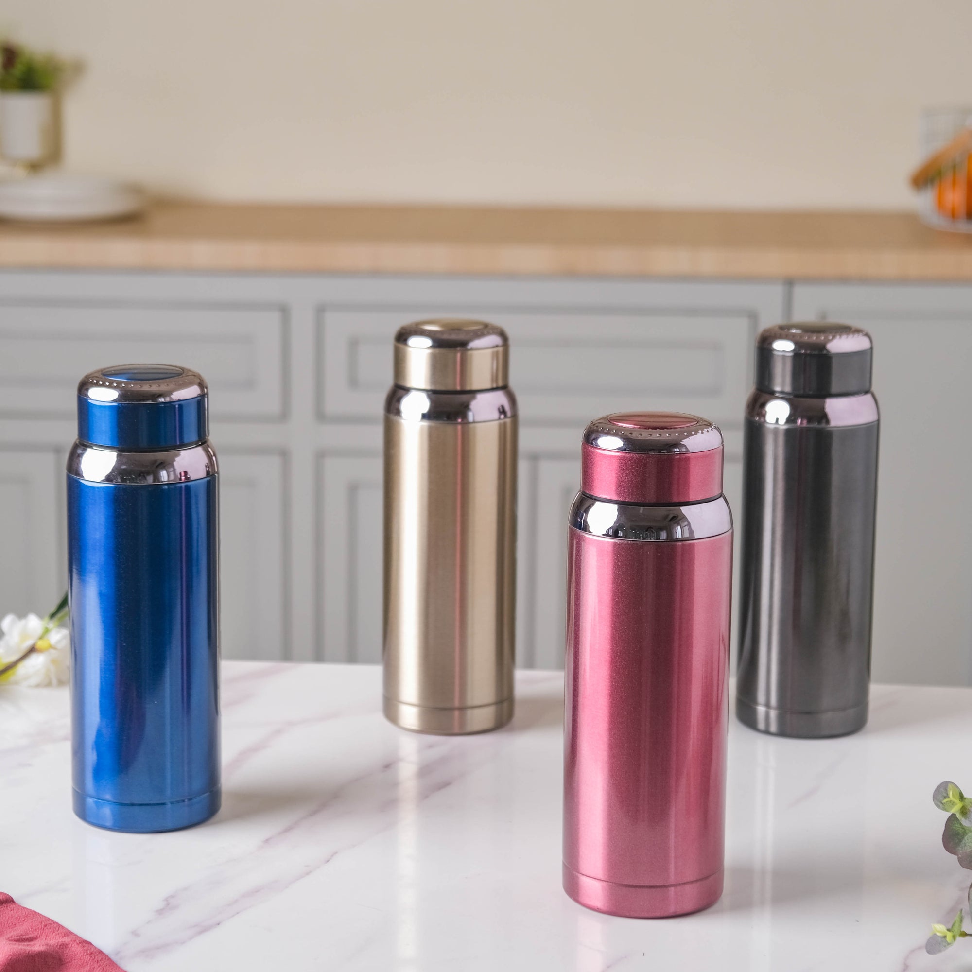 The thermos flasks in solid shades are classic and modern. The steel flask will look attractive sitting on a working desk or dining table. In addition to its sleek finish, what makes the steel thermos special is that it comes with a strainer to strain the tea leaves or filter coffee.