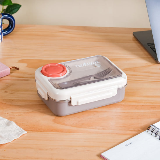 The lunch box ensures a pleasurable lunchtime experience, thanks to its high-quality features. Food-safe, BPA-free materials of the tiffin box put your health and safety first, while the 304-grade stainless steel guarantees top-notch quality. With effective water insulation, keep your meals wonderfully heated inside this lunch box. The three distinct compartments help you organise your food, while the clip locks on all four sides help you keep your food secure. The compact bowl with lid adds adaptability while the detachable silicone gasket ensures easy cleaning. With its compact yet sturdy design, you can travel light. Enjoy every mouthful by elevating your lunchtime with this gorgeous lunch box.