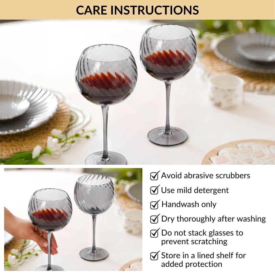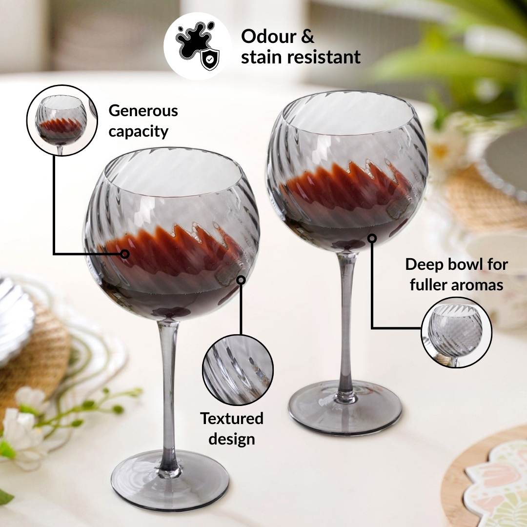 Benefit: Made from high-quality, durable tinted glass, these goblet glasses offer excellent clarity with a subtle smoky finish. The sturdy stem and balanced base provide stability, while the smooth rim ensures a comfortable and refined sipping experience. The goblets are durable, odour-resistant, and easy to maintain.