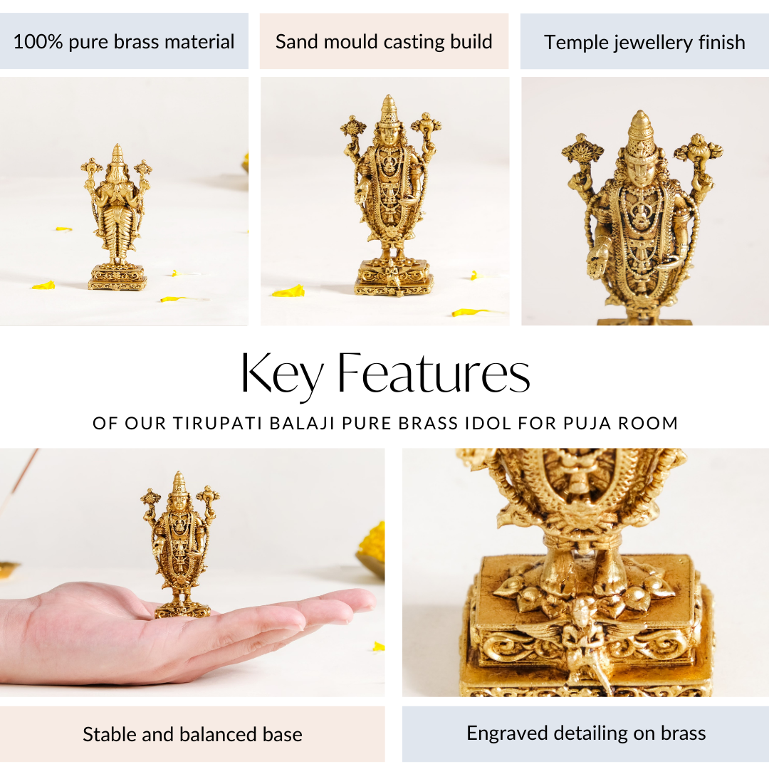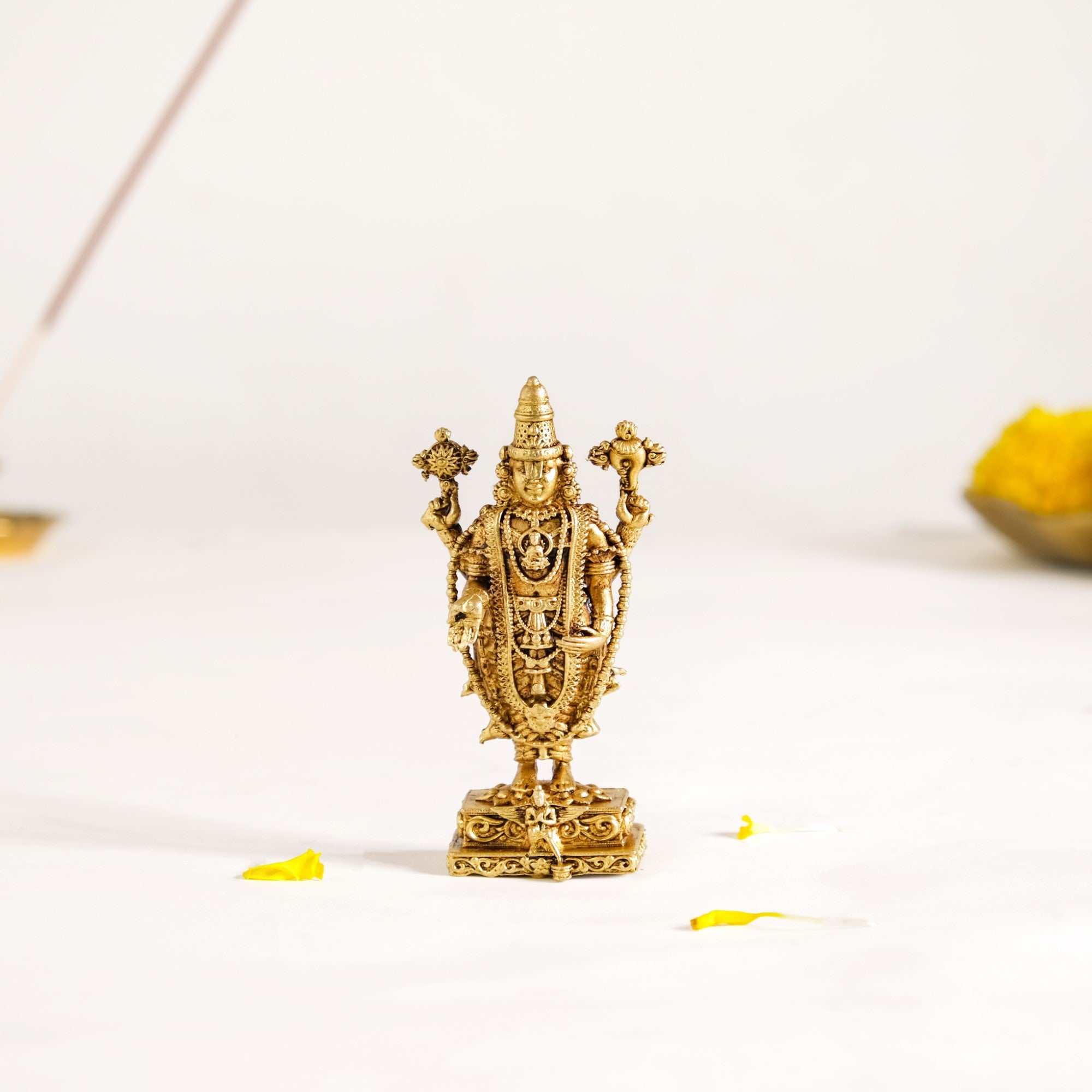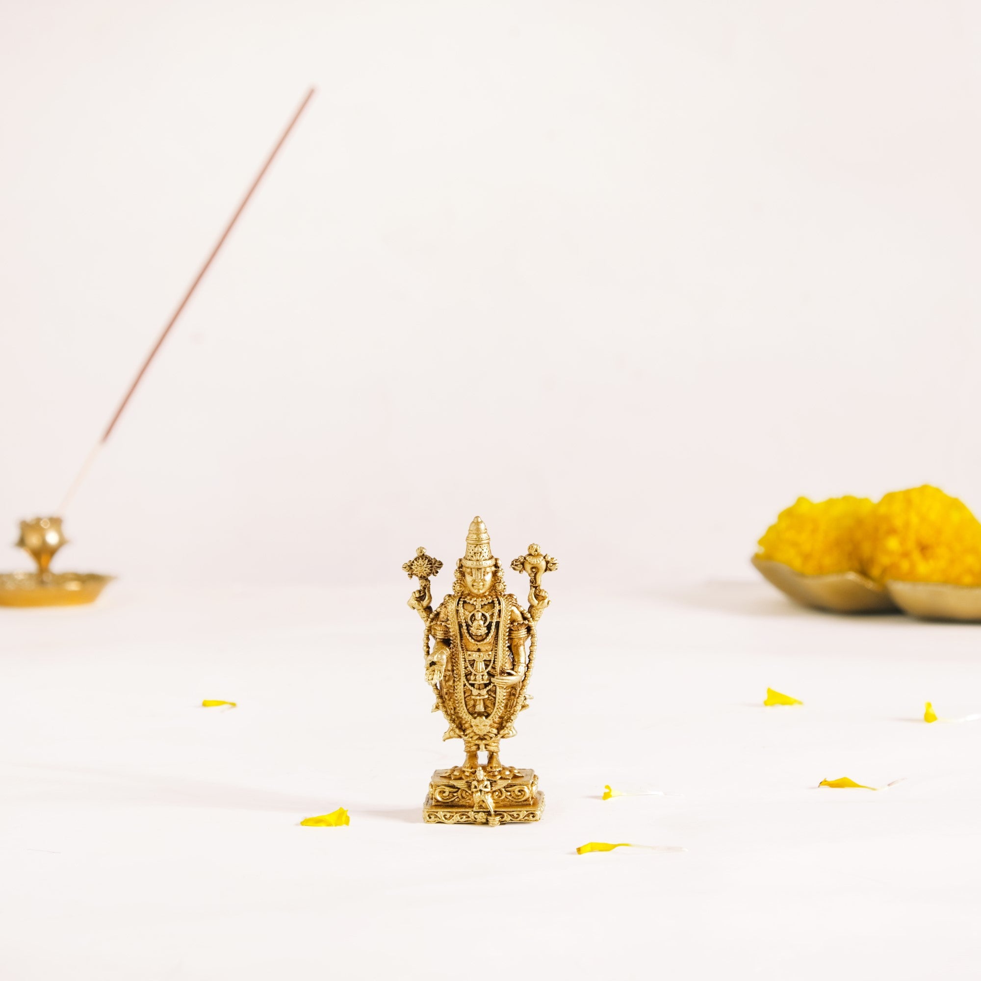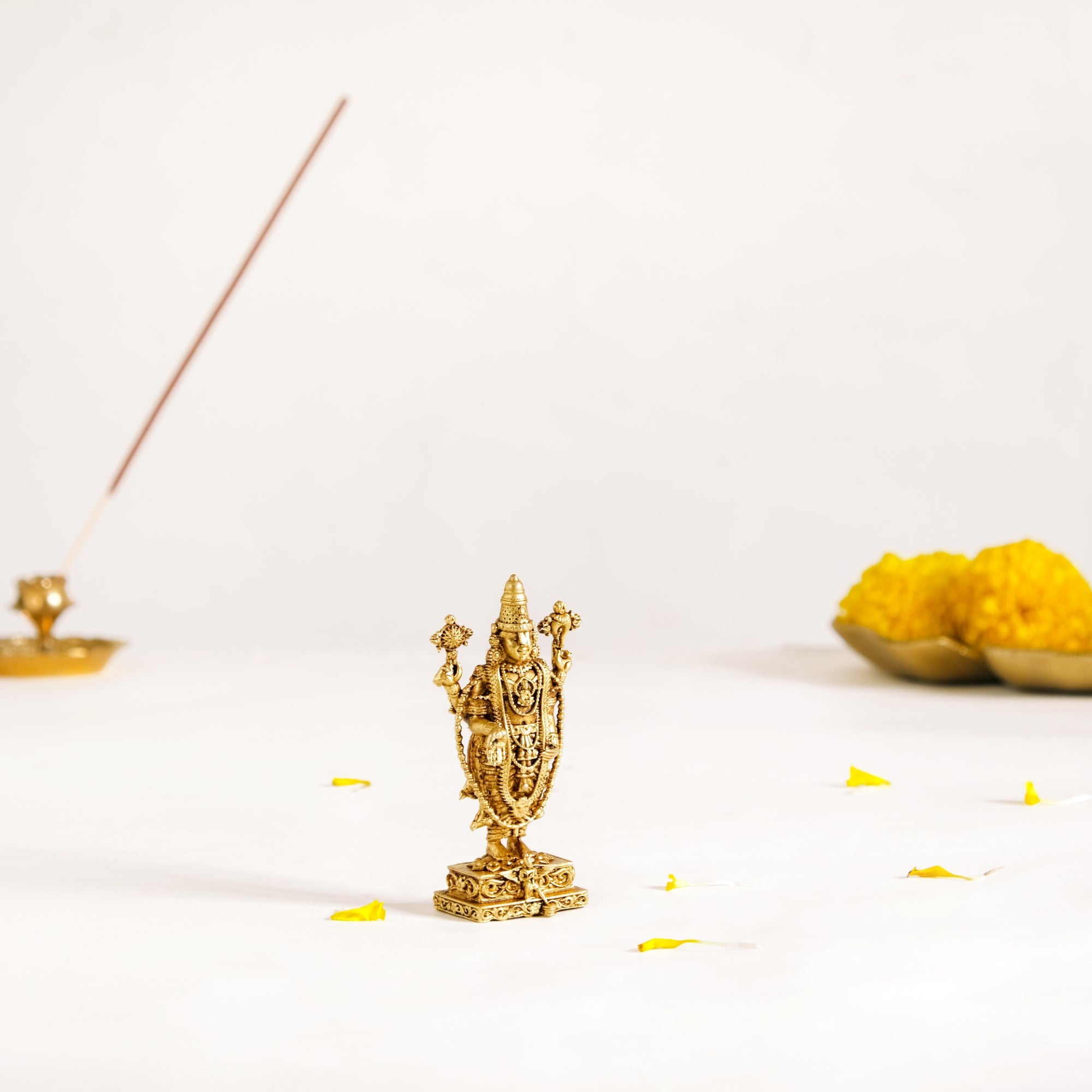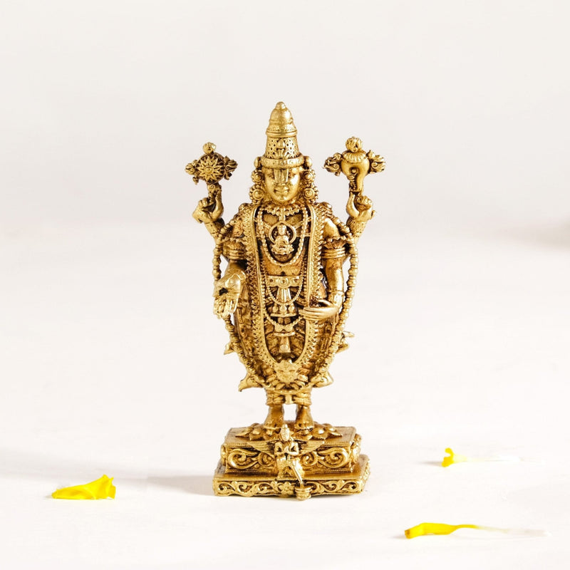The brass idol of Tirupati Balaji is significant as it represents Lord Venkateswara, an incarnation of Lord Vishnu. Devotees believe that having this idol in their homes brings blessings, prosperity, and protection. It is often used for worship and spiritual practices.