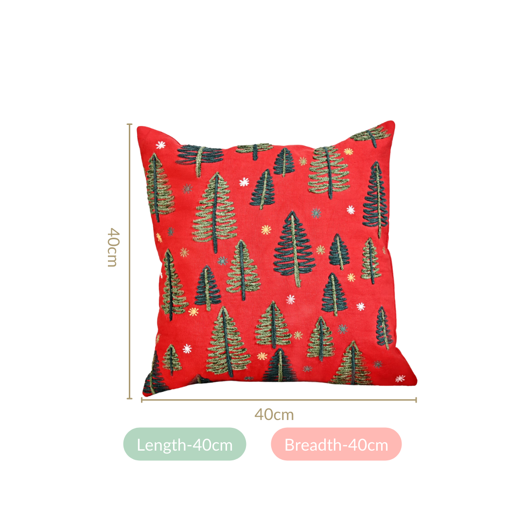 Add a festive touch to your home with this vibrant red cotton cushion cover, crafted to bring warmth and cheer to your holiday decor. Designed with charming Christmas motifs, the pillow cover is a perfect seasonal addition to any cosy corner.