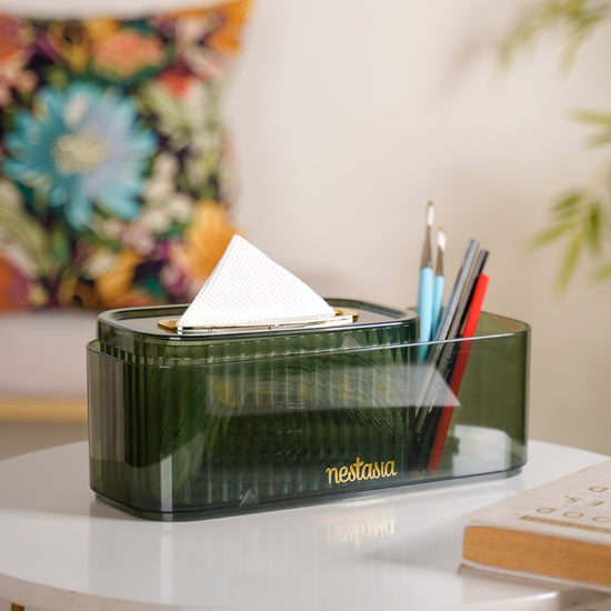 Experience the perfect blend of convenience and style with our vibrant green transparent body tissue box. Meticulously crafted from durable PVC, this sleek tissue paper holder boasts a removable lid for easy tissue replacement. Its standout feature is the innovative built-in spring mechanism, which seamlessly adjusts the ribbed tissue box's height for effortless access. The included elongated tray can also be used independently to accommodate cosmetics and essentials. Elevate your space with this elegant and functional tissue companion, striking the ideal balance between style and utility.