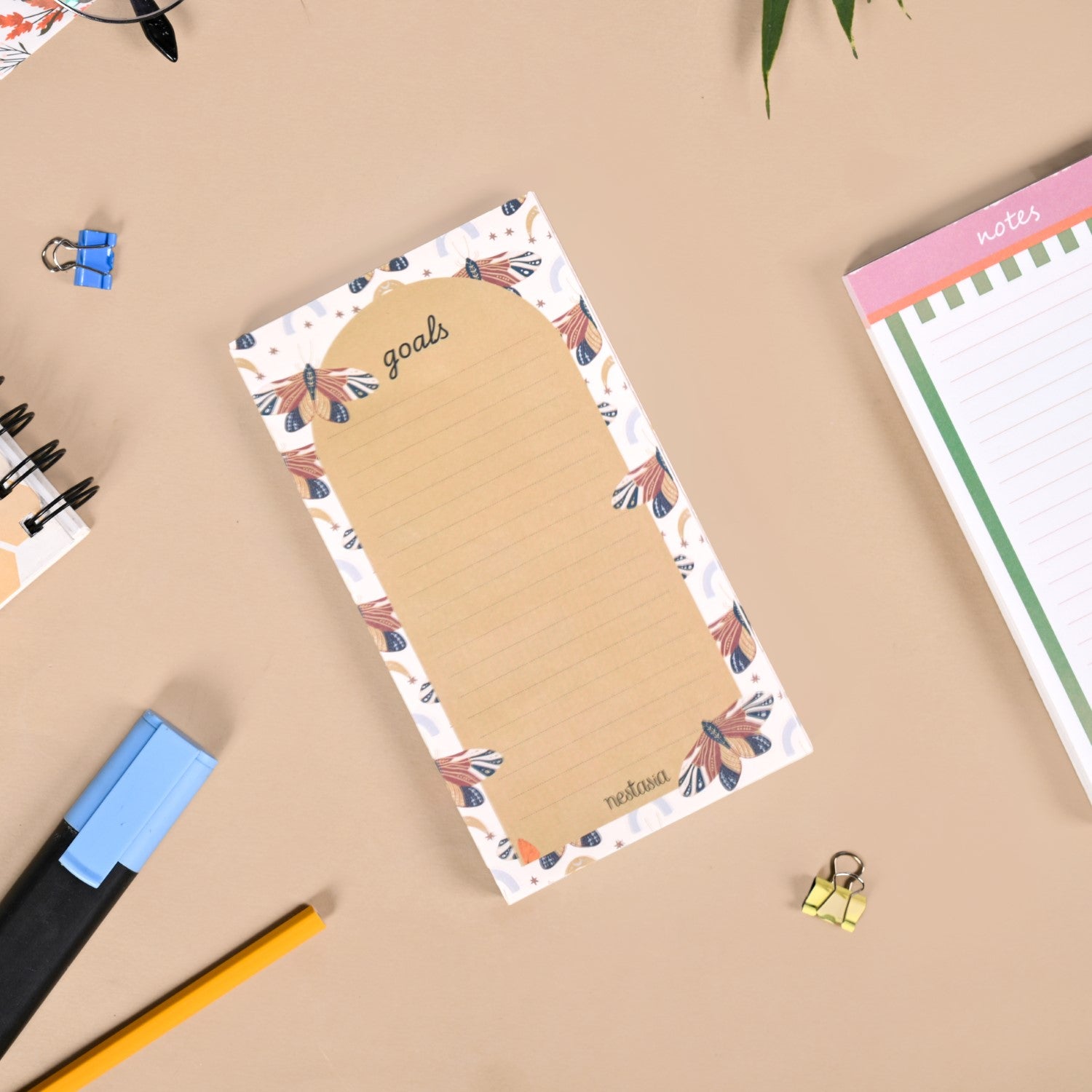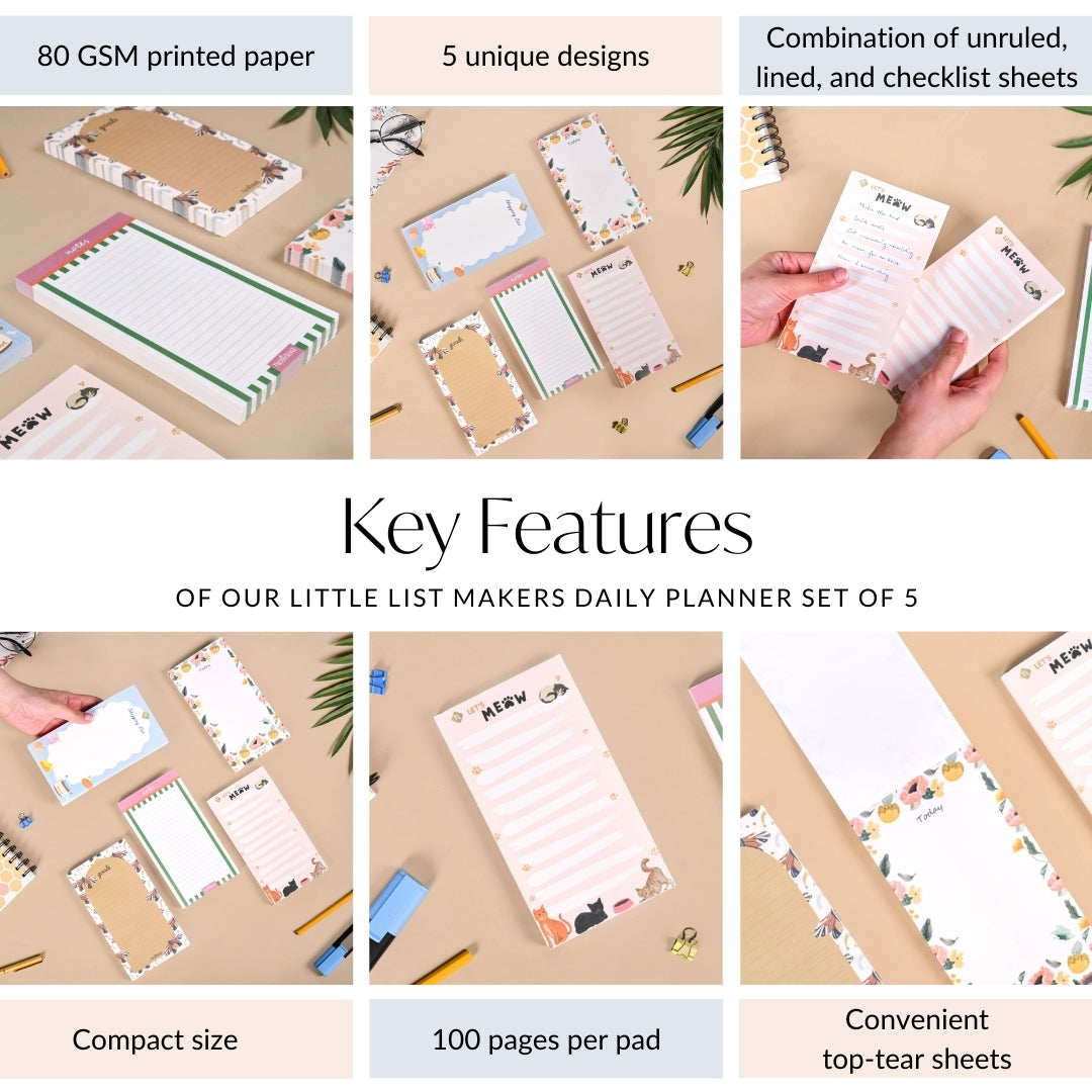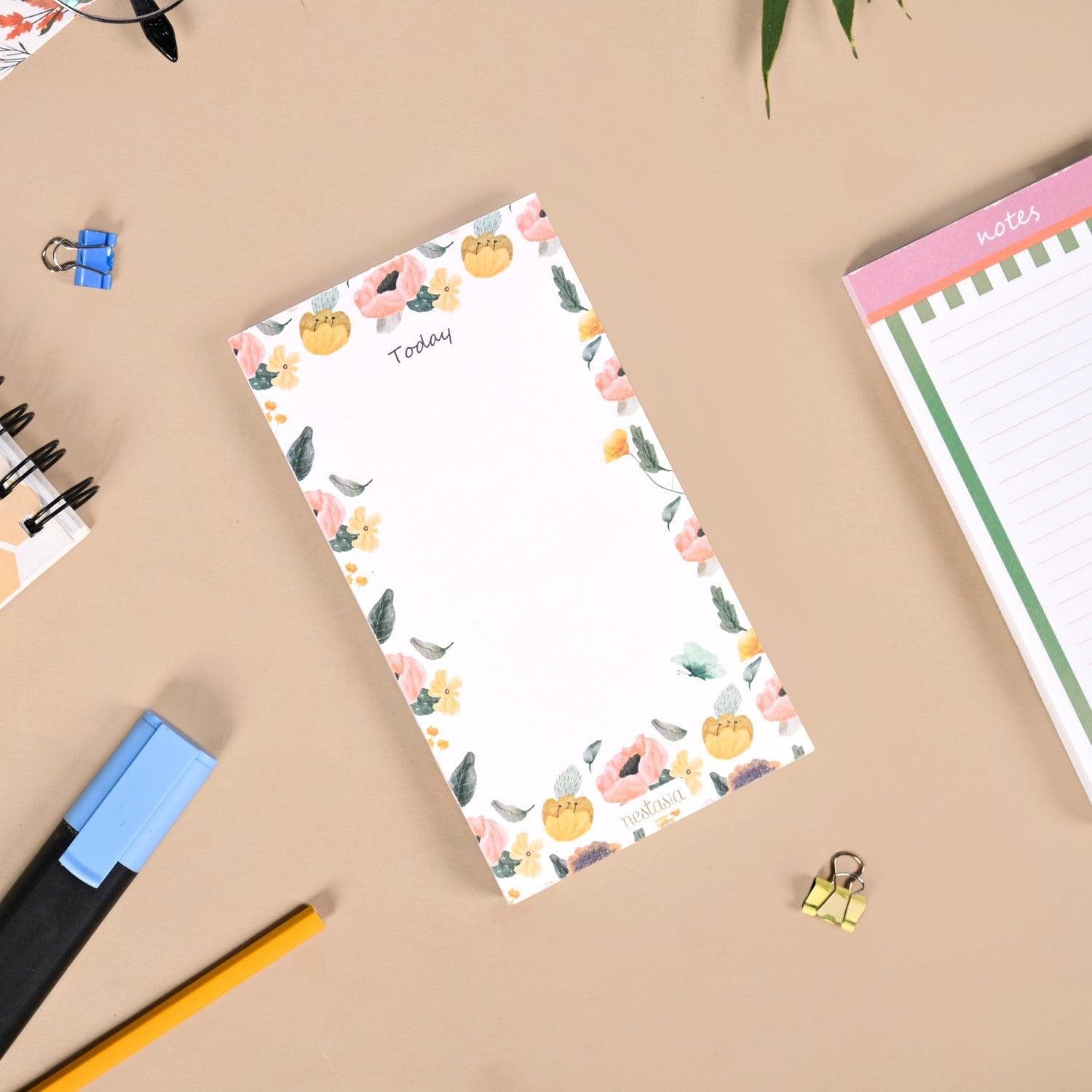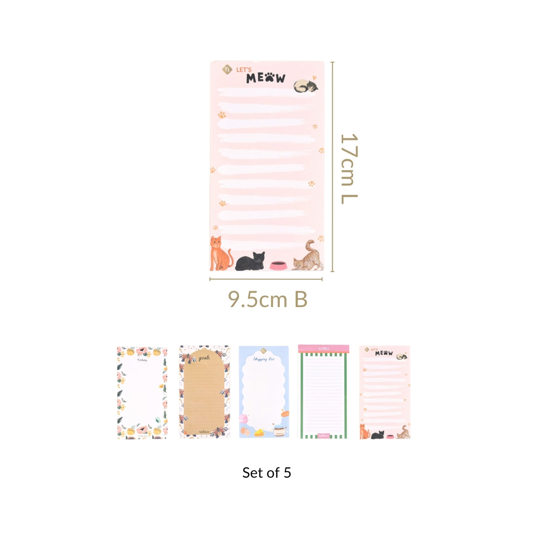 Design: This notepad set is all about playful design and cheerful aesthetics. Each of the five notepads features a unique theme. From whimsical prints to vibrant florals and nature-inspired designs, adding a fun twist to your daily tasks. Soft pastel tones, minimal illustrations, and clean, structured layouts with spaces for checklists, notes, and ideas make these pads as visually engaging as they are functional. Made from 80 GSM paper with a convenient top-tear feature, these notepads are perfect for adding creativity and organisation to your day.