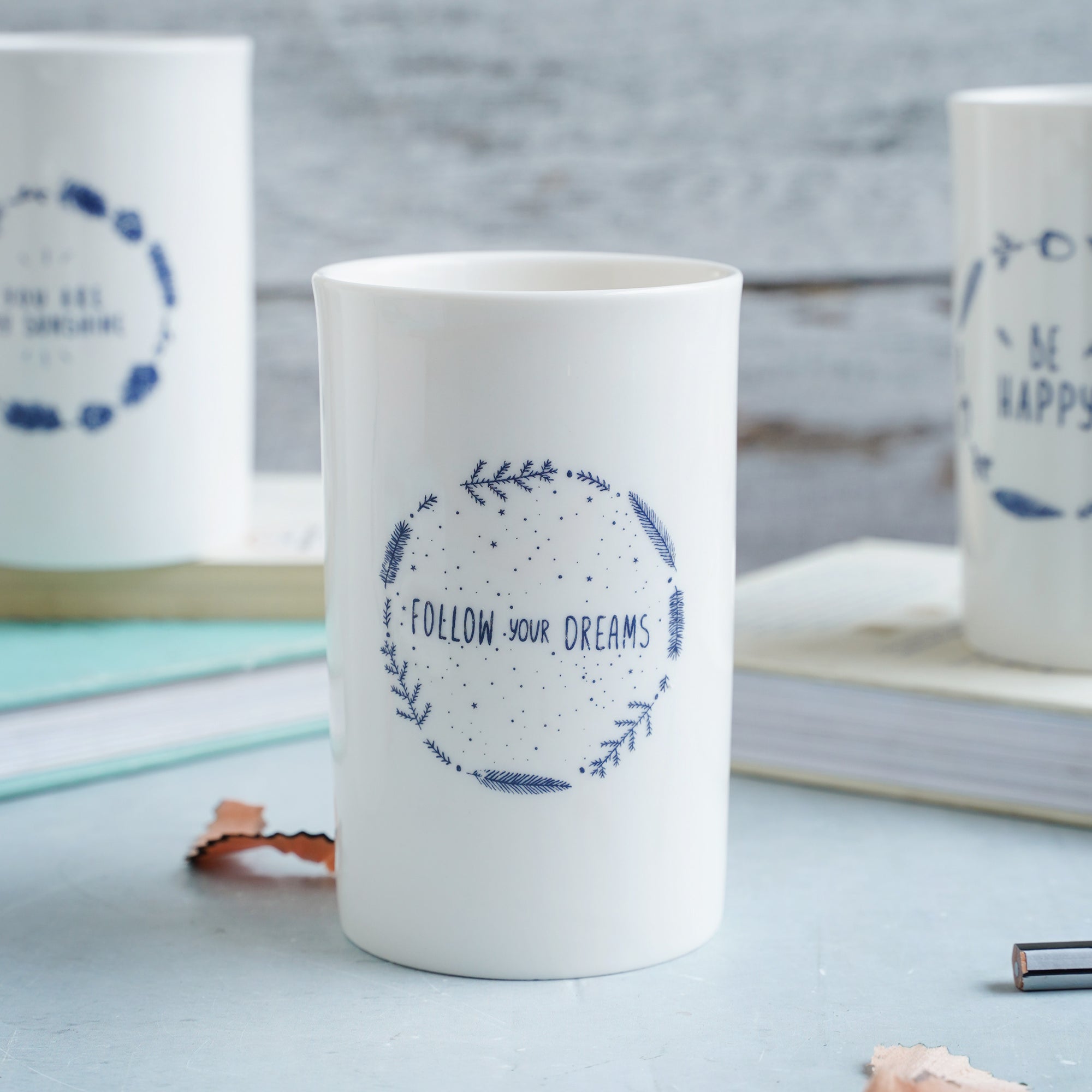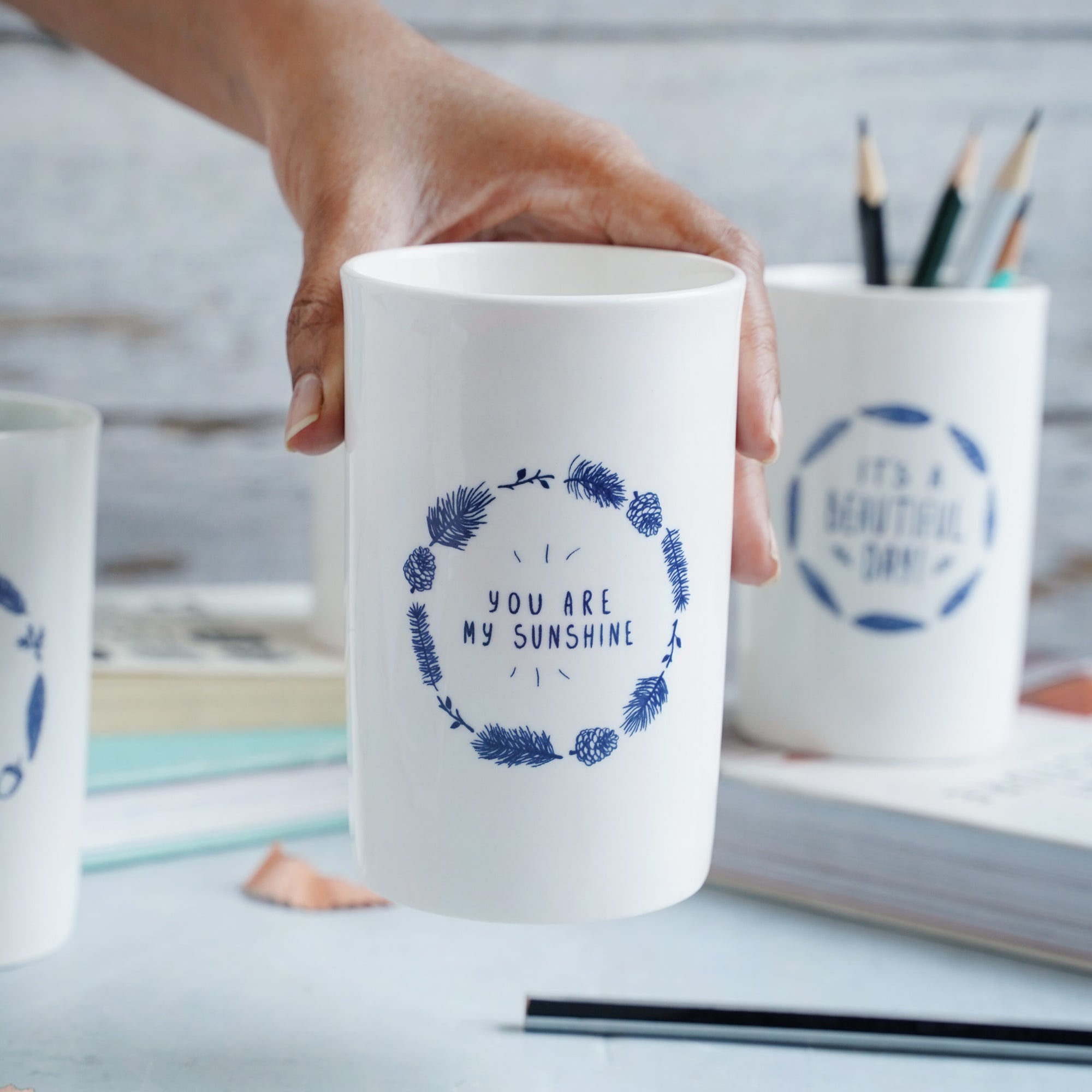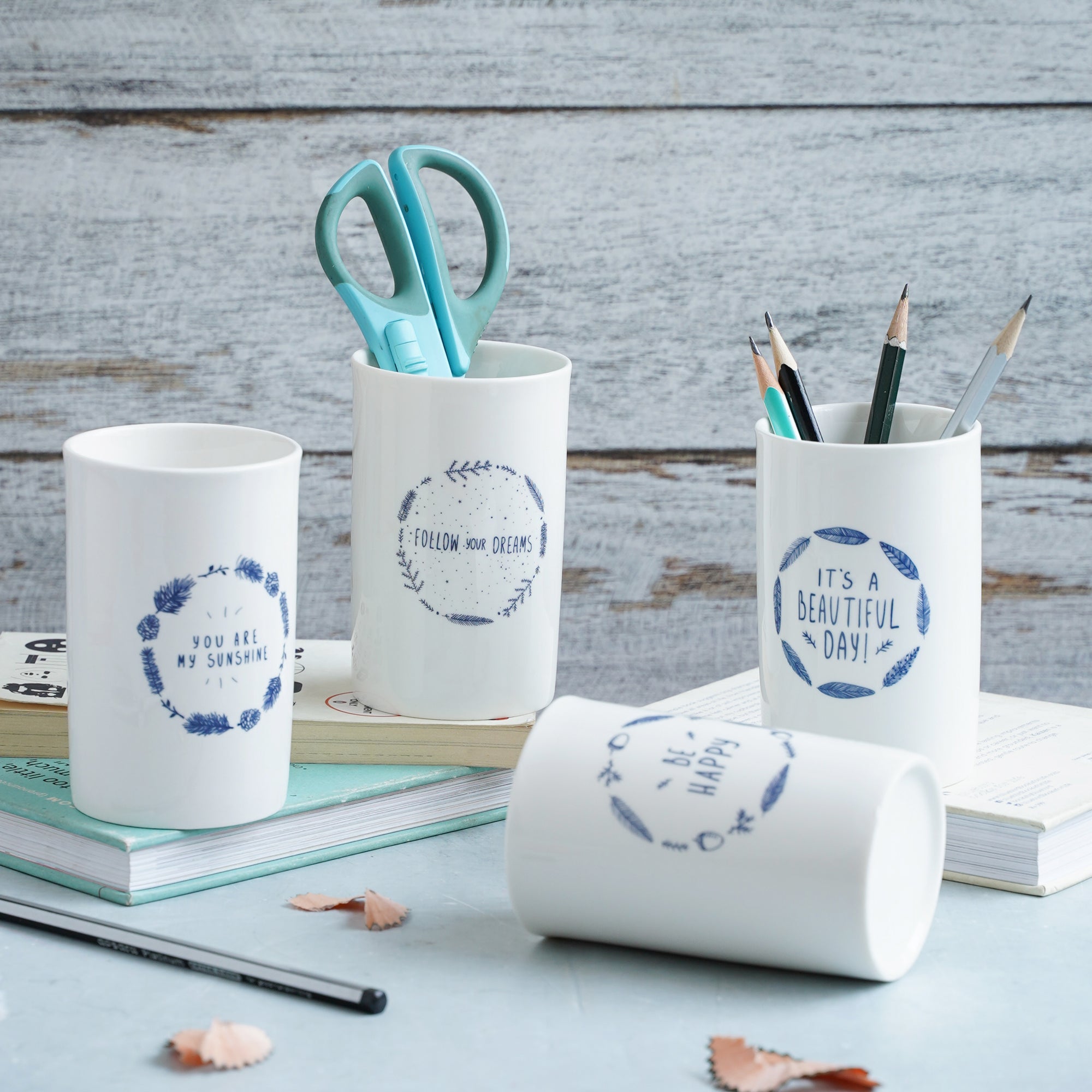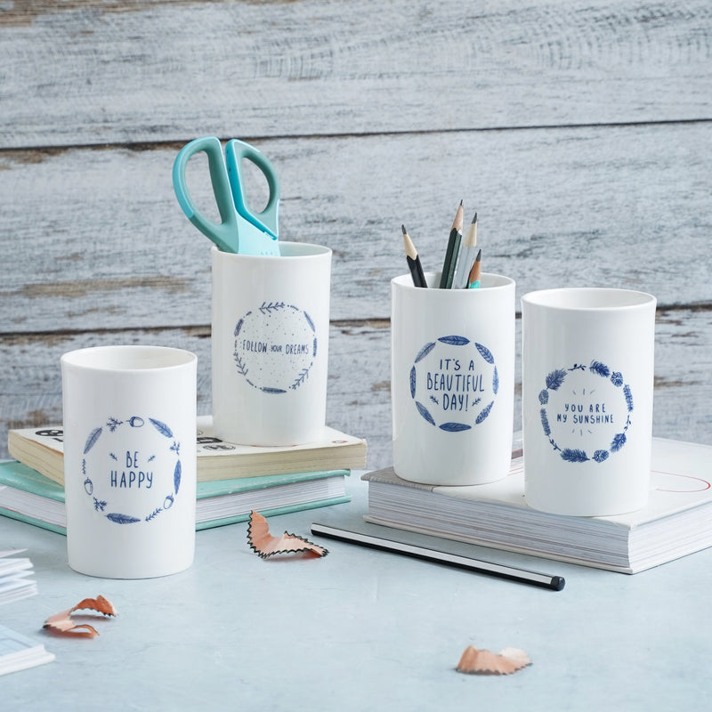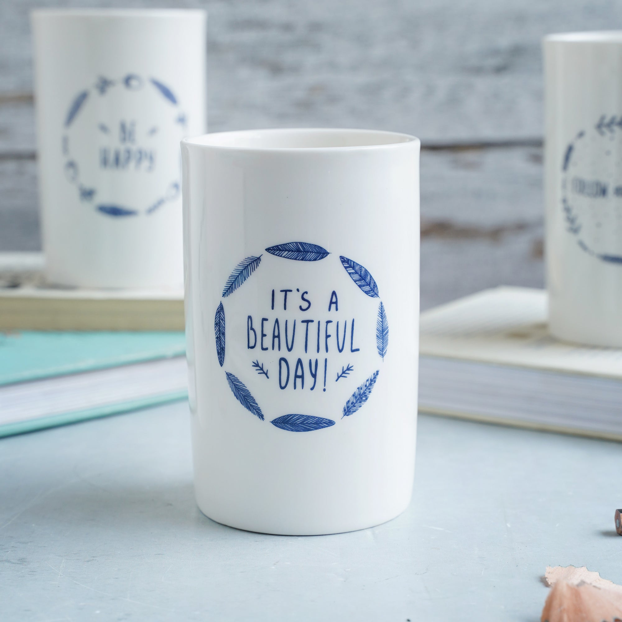 White toothbrush holder that is quirky and comes with various prints. Use the ceramic tumbler to keep bath accessories like toothpaste, toothbrush, shaving essentials, pedicure essentials. The ceramic holder can also be used as a pen stand to keep stationery like pen, pencil, colour pens, scissors or can be used to organise the drawing room to keep tv and ac remote. The glass can also be used as a cutlery holder to keep knives, fork and spoon with tissues.