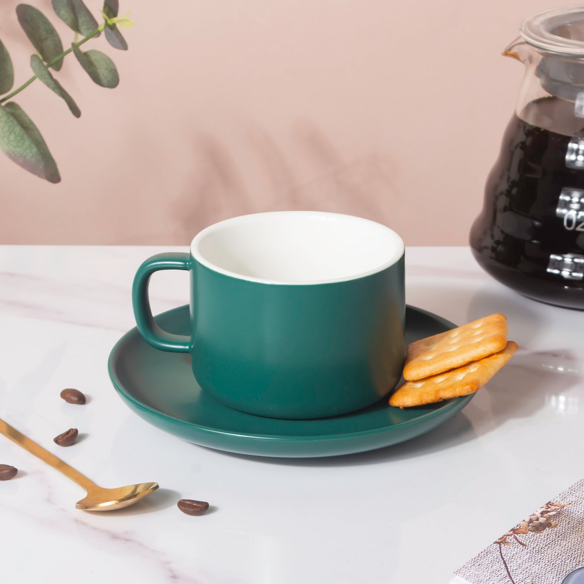 Warm tea, whether it be oolong, green, black, or milk tea, is delightful to sip from the vibrant teal-colored teacup and saucer. The stunning flare with which the cup and saucer will be displayed on the table is sure to spark conversation. Since the teacup and saucer set has a monochromatic color, pairing them with kettles and other necessary tea accessories will be simpler when guests gather at the table during high tea. Nestip: Gift the cup and saucer to a colleague on their birthday. Size: Cup - 8.5cm D x 6cm D Length with handle - 11cm L Saucer - 15cm D x 2cm H Capacity (cup): 200ml Color: Teal Material: Ceramic Products included: 1 cup and 1 saucer Style: CZS58C79
