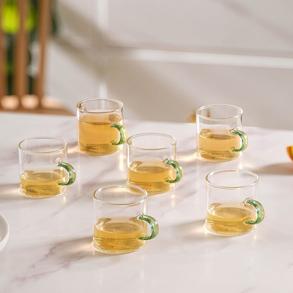Anjalika. Maroo Transparent And Green Cup Set of 6