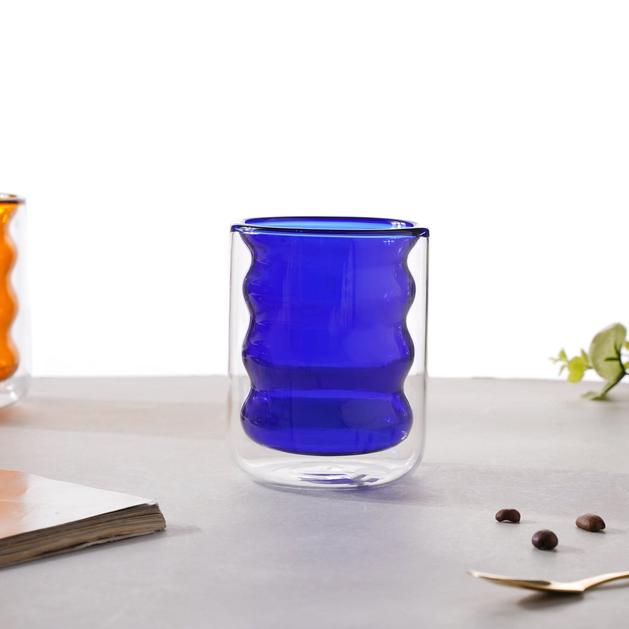 The vibrant glass cup in the double-walled glass looks exquisite in a contemporary home. Serve a variety of juices, beverages, and cocktails at a pool party in this stylish glassware. One can also use the brilliant blue cup as an accent piece in a living room.