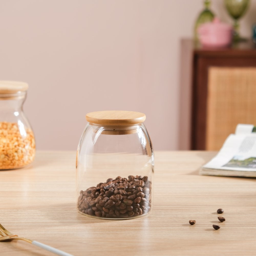 The clear glass jar has been made of high-grade glass, making the glass container safe and durable. The glass pantry storage container has a smooth wooden lid which is airtight to keep the food content fresh for a long time. The stylish kitchen glass jar with a wooden cover top has an exquisite design to spruce up your kitchen space. The airtight glass container is versatile glassware that can fit every style and home interior. The clean storage jar can be an excellent gifting option on several occasions like housewarmings, weddings, anniversaries, Mother's Day, etc.