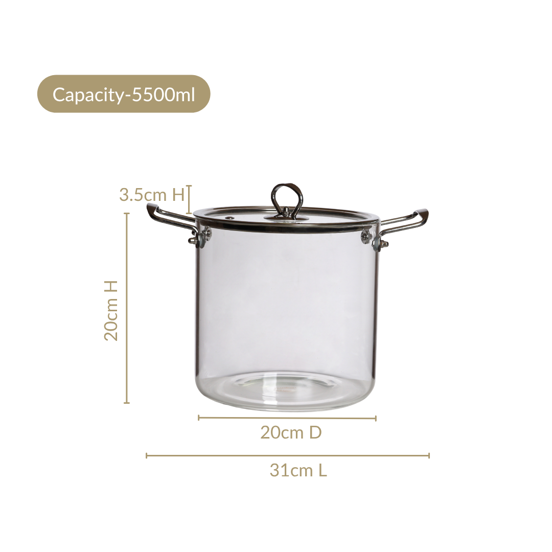 Transparent Glass Soup Pot With Stainless Steel Handle Extra Large 5500ml
