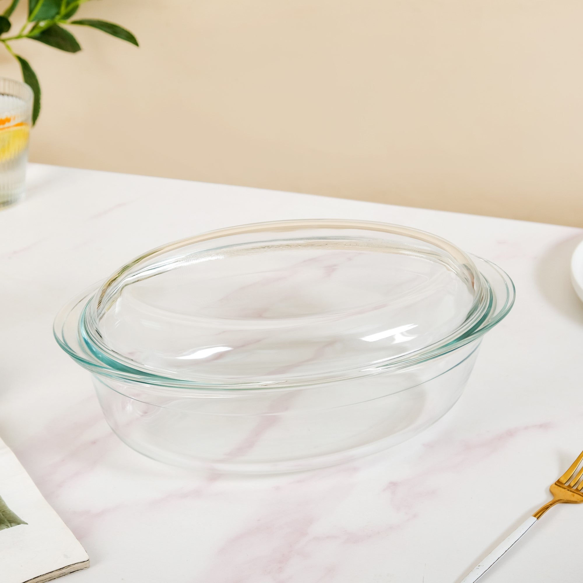 Transparent Oval Glass Casserole Dish With Lid 3300ml