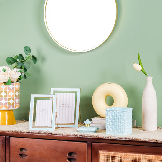 These versatile photo frames are designed to complement a wide range of interior styles due to their sleek and timeless features. Their elegant and understated design suits contemporary decor, allowing you to showcase your photos or artwork sophisticatedly. Due to their neutral and adaptable design, they can fit well within eclectic interiors, allowing you to mix and match various decor elements. These frames are versatile and can be integrated into various interior design styles, allowing you to showcase your cherished photos and artwork while enhancing the overall aesthetic of your space.