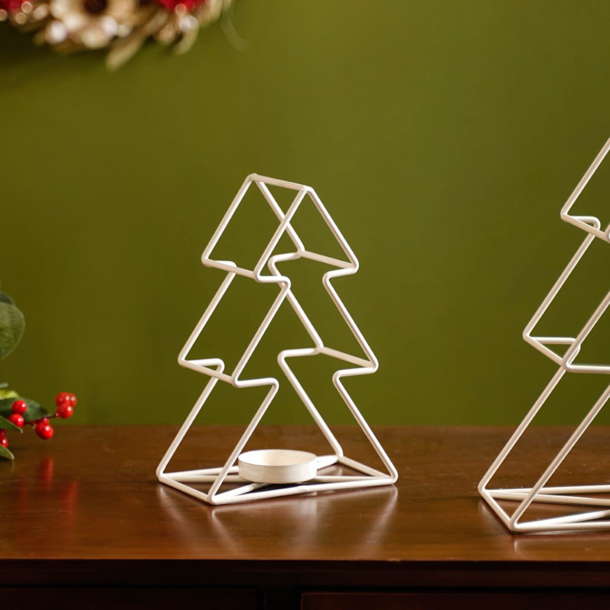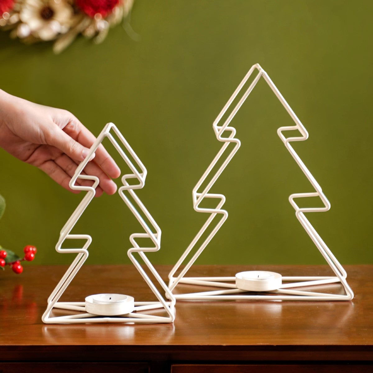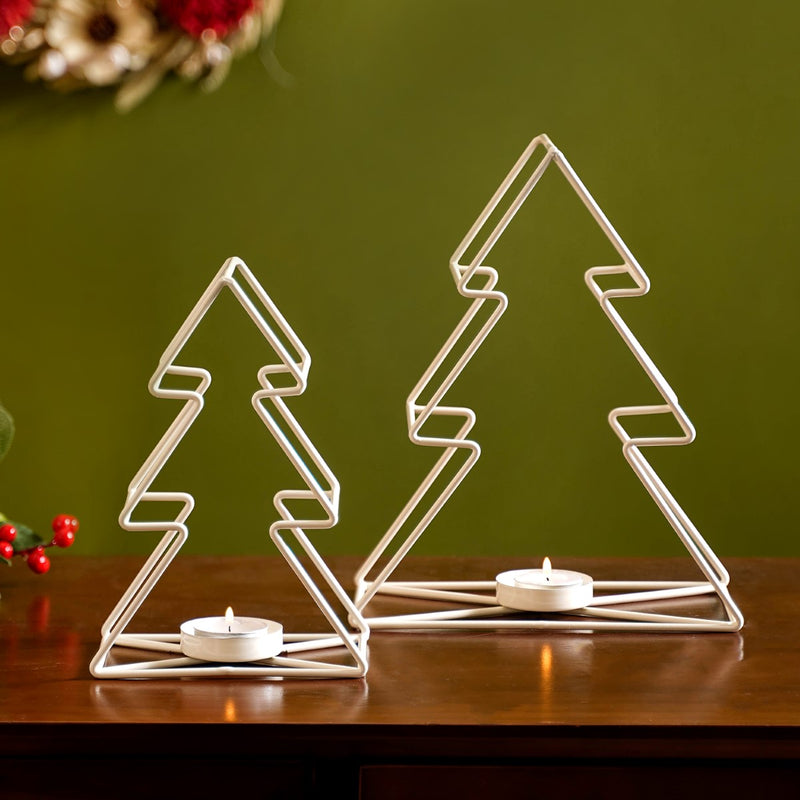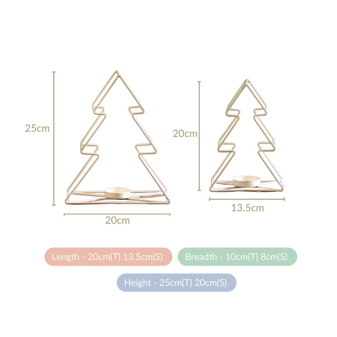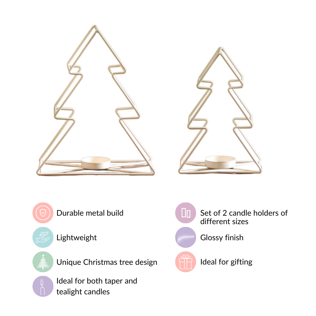 Their unique Christmas tree-shaped design combined with the glossy finish and durable metal construction sets these holders apart. They offer versatility, functionality, and an elegant charm that effortlessly elevates your festive décor, making them a standout addition to your holiday collection.