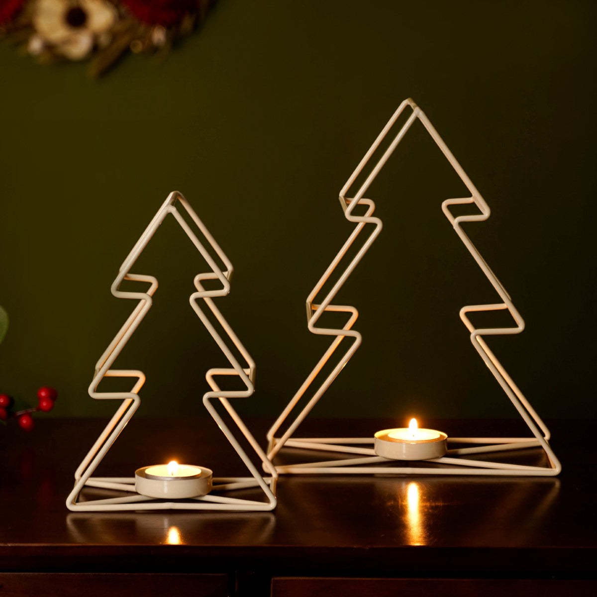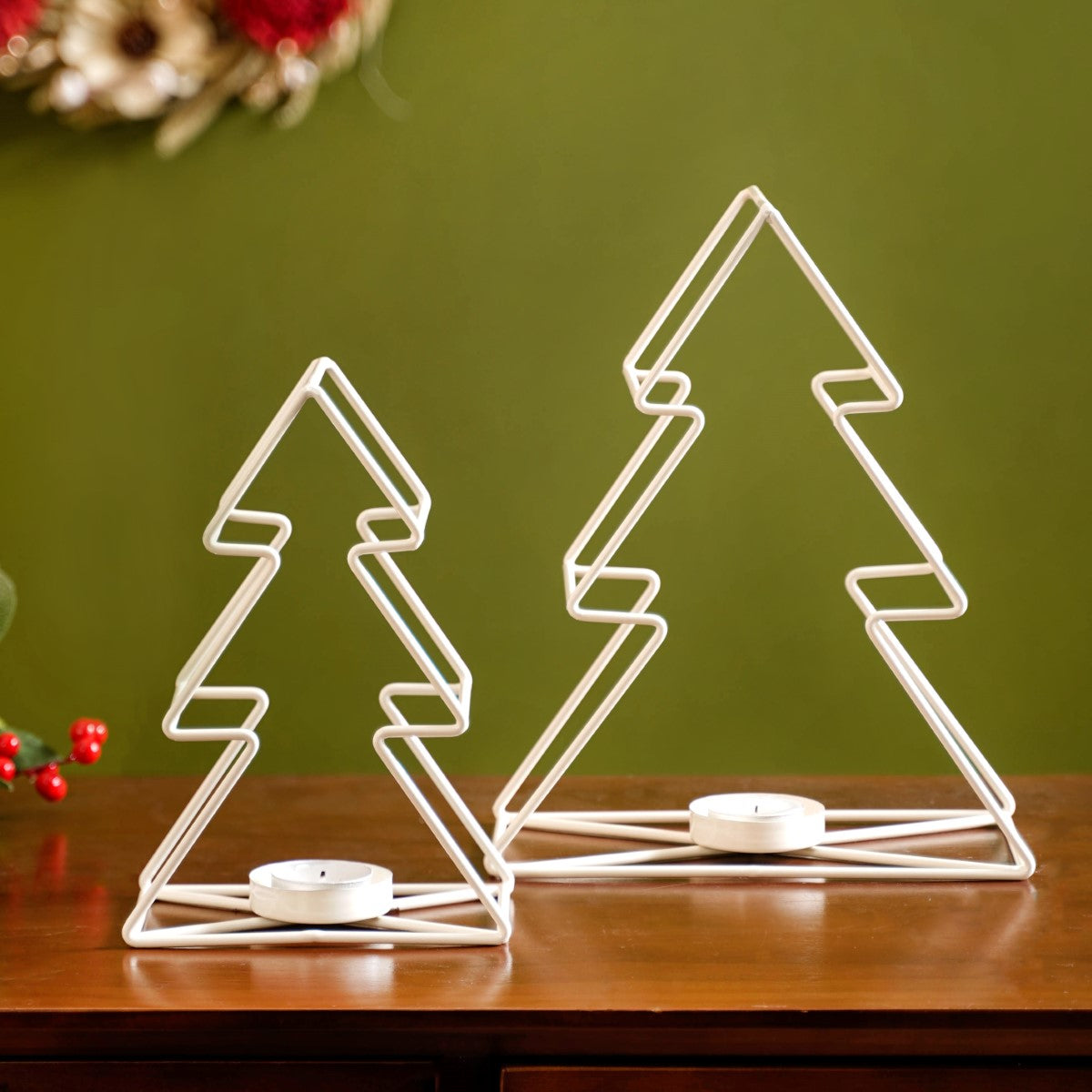 Certainly! These candle holders come in a set of two, beautifully designed in a unique Christmas tree shape. Their glossy finish and warm ivory hue make them an ideal and thoughtful gift for anyone who adores decorating for the holidays.