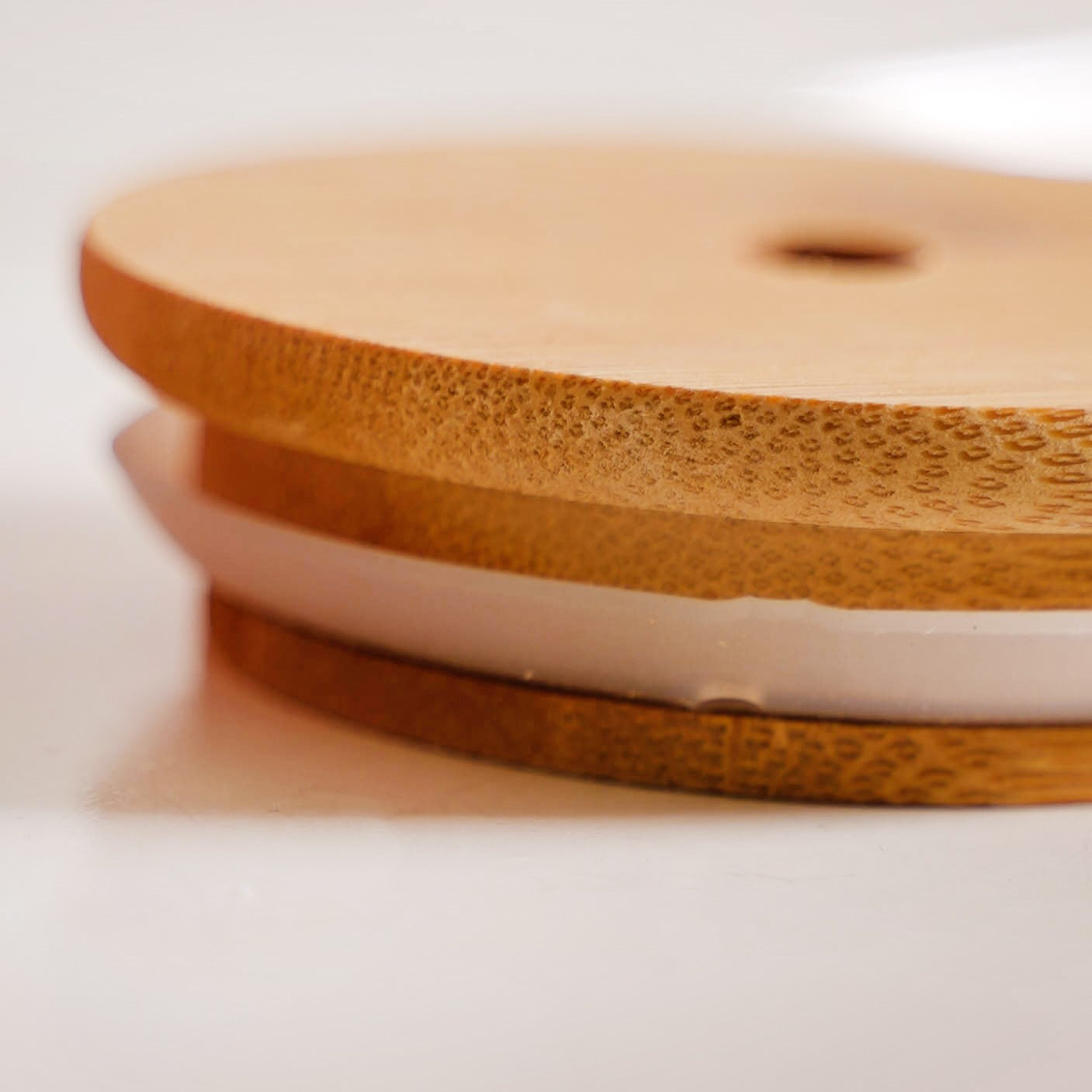 Design: Each glass tumbler has a cylindrical shape with softly curved shoulders that give it a clean yet gentle look. Made of clear borosilicate glass, the body is smooth and lightweight with a seamless surface that feels refined. A flat bamboo lid fits neatly on top, its earthy texture contrasting with the clarity of the glass. A silicone gasket beneath the lid ensures a tight seal and adds a soft tactile element. Completing the set is a straight, transparent glass straw that sits snugly through the lid, mimicking the tumbler’s polished finish. These popular beer can tumblers are a must have in the glassware collection
