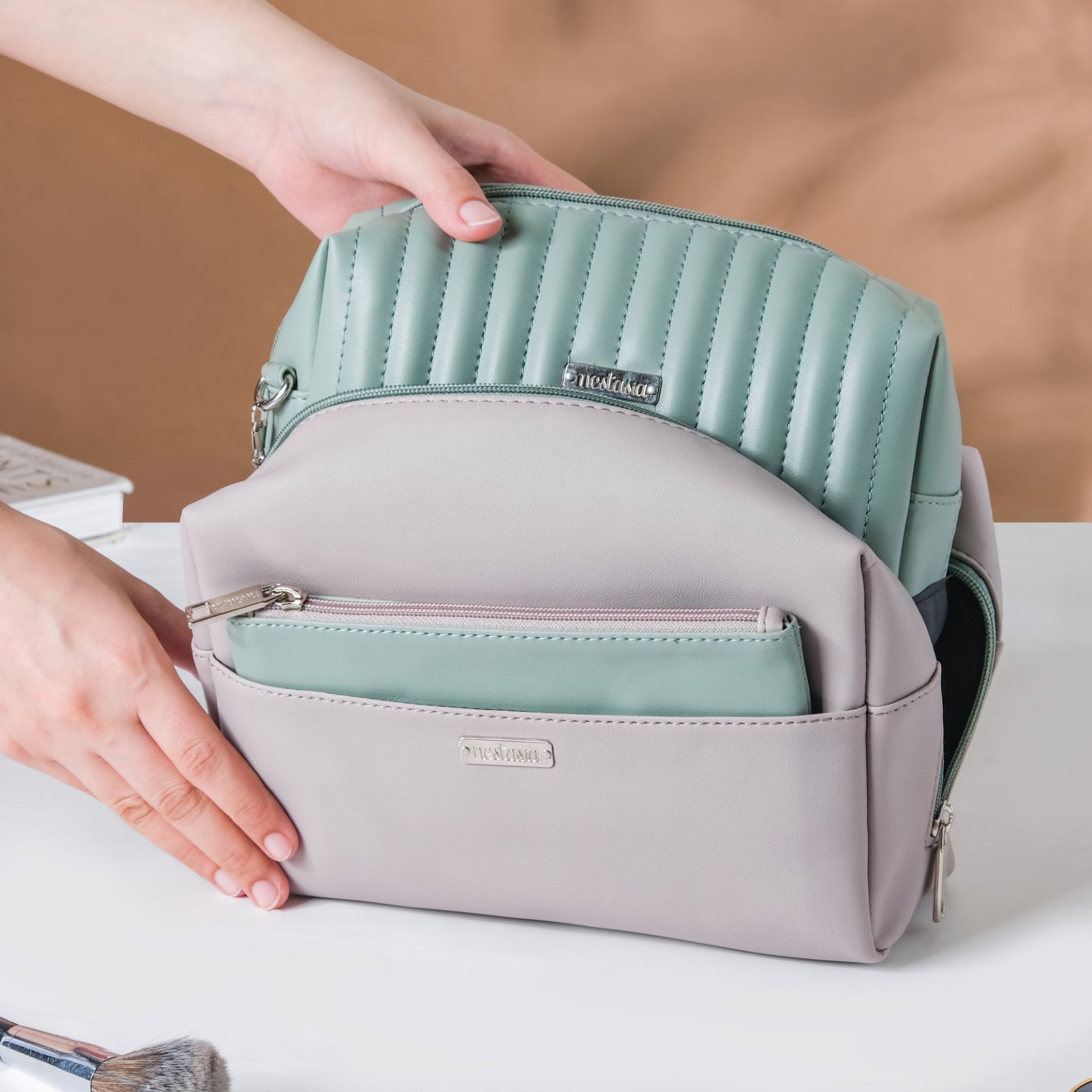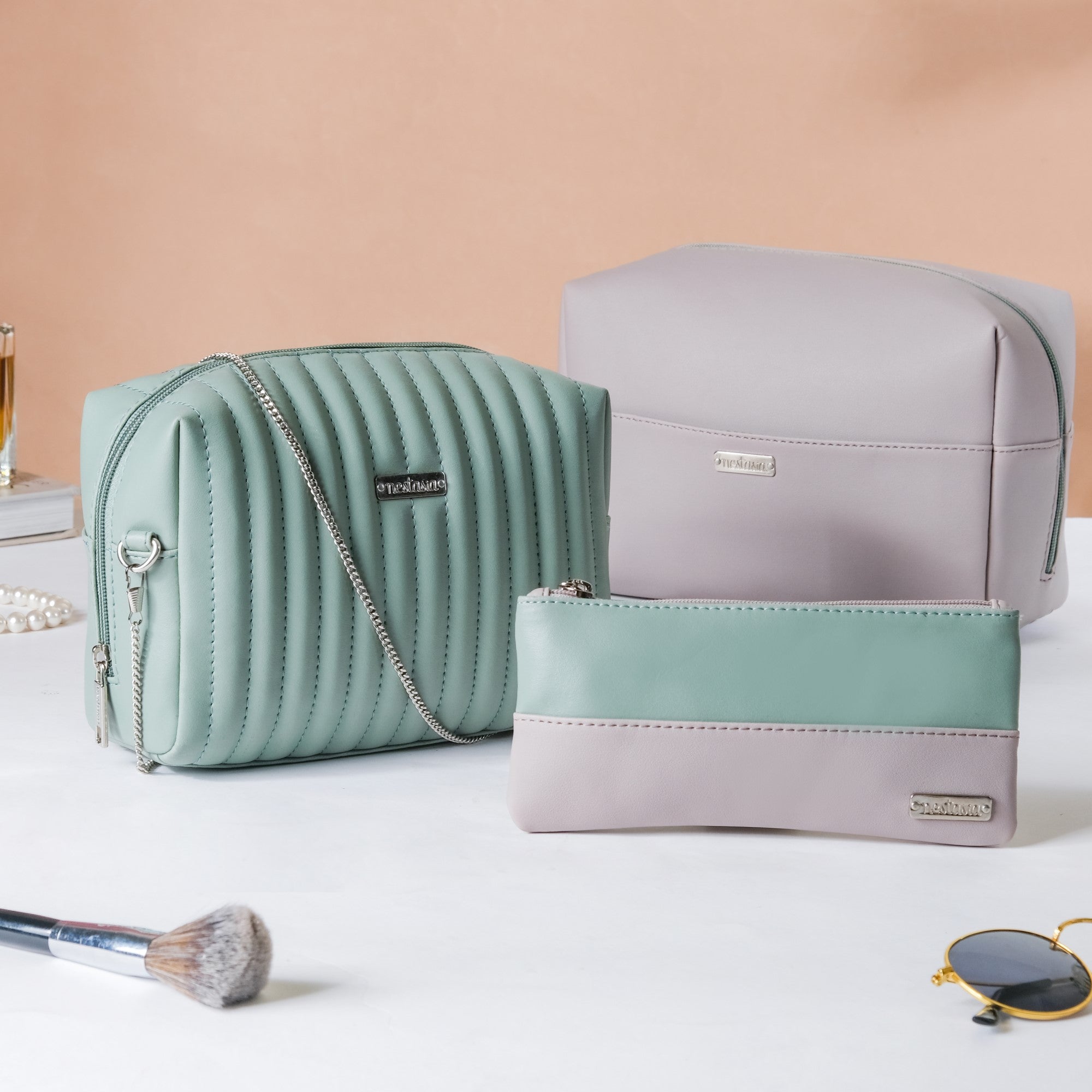 Elegant and useful, our vegan leather travel pouches are ideal for any trip. Crafted from top-quality materials and available in three different sizes, these grey and green pouches can store all of your travel essentials. Their gender-neutral design makes them perfect for both men and women, while their versatile compartments keep your belongings organized and easy to find. Whether you're traveling for business or pleasure, these travel pouches will make your trip more enjoyable.