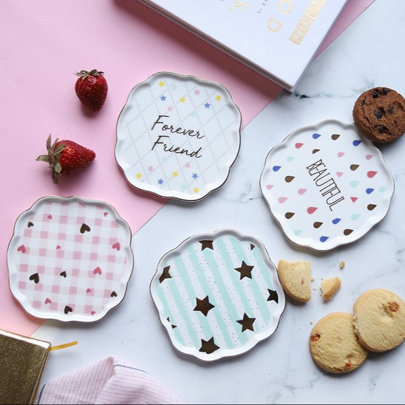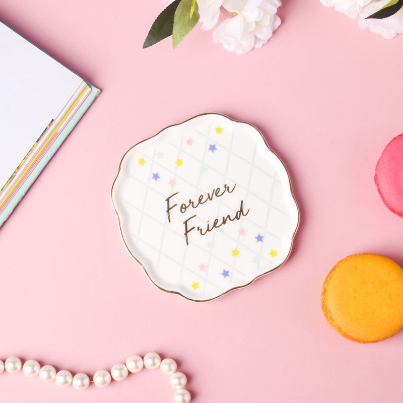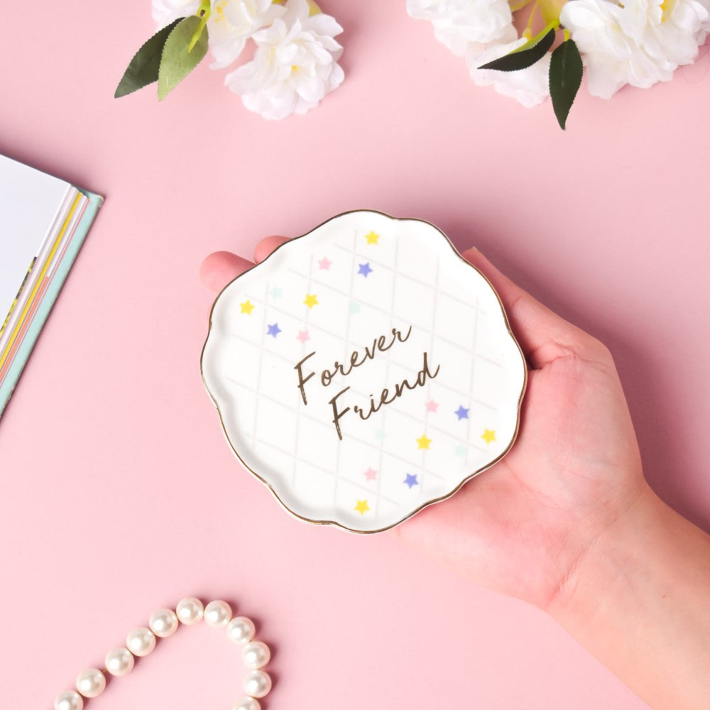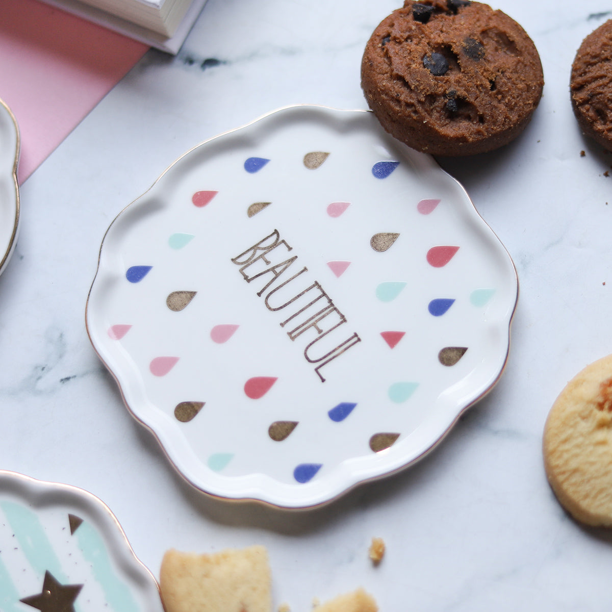 The ceramic printed trinket dish is a versatile piece that can be used for both decorative and functional purposes. It can be placed on a vanity, dresser, shelf, or tabletop to add a touch of style to any room. The dish's printed design adds a touch of personality, while its shallow depth makes it ideal for storing small items such as jewelry, keys, or coins. The dish's functional design also makes it a great way to keep small items organized and easy to find.