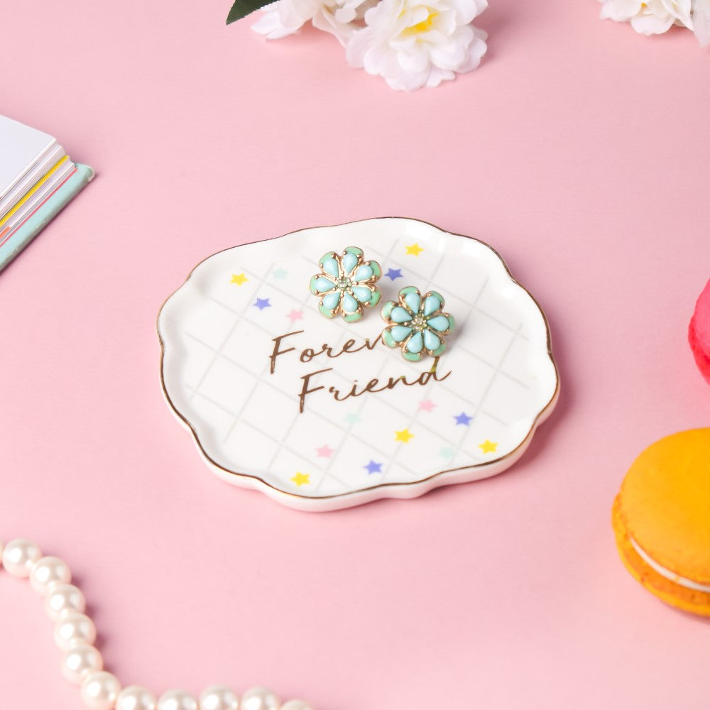 With a unique wavy rim and vibrant prints, this exquisite ceramic trinket tray adds a touch of whimsy and charm to any space. Crafted with precision, the ceramic construction ensures durability while providing a stunning canvas for the intricate designs. Perfect for organizing your jewelry, keys, or small treasures, this trinket dish seamlessly blends artistry and utility. Whether it graces a vanity, adorns a dresser, or steals the spotlight on a shelf or tabletop, this vibrant treasure not only shines as a functional masterpiece, but also can be a stunning decor accent.
