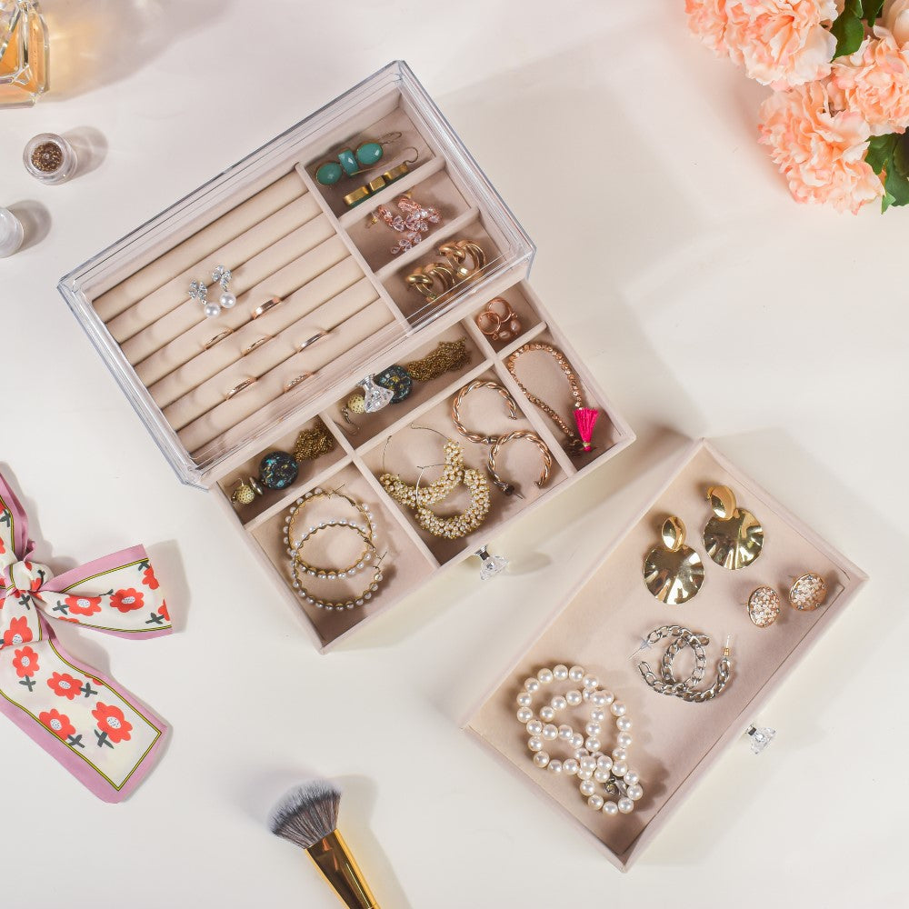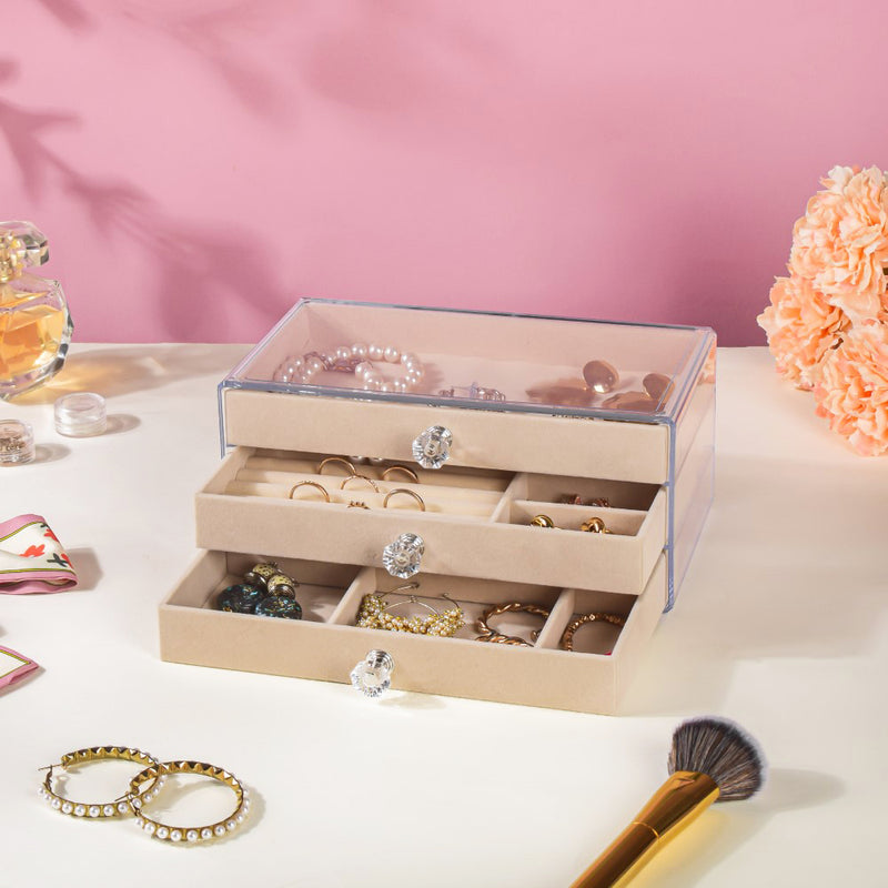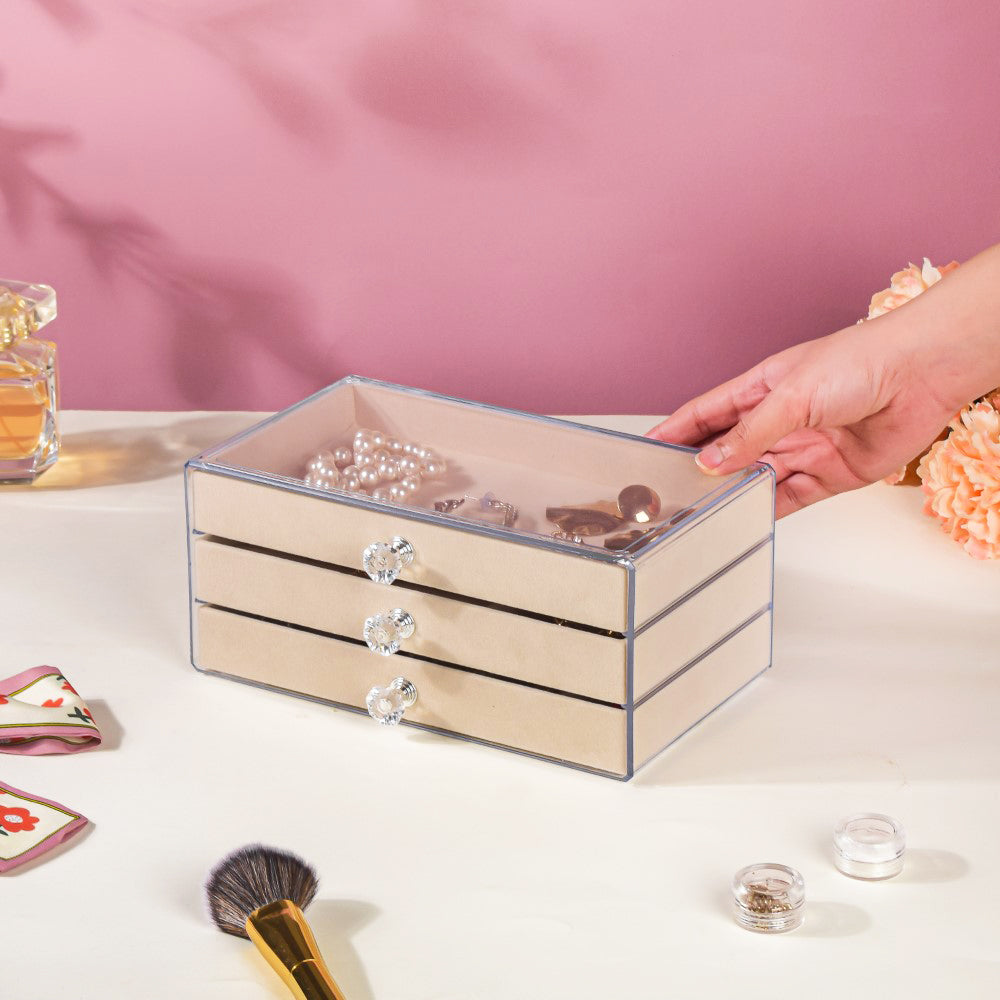OMPREET KAUR Triple Drawer Jewellery Organiser Cream