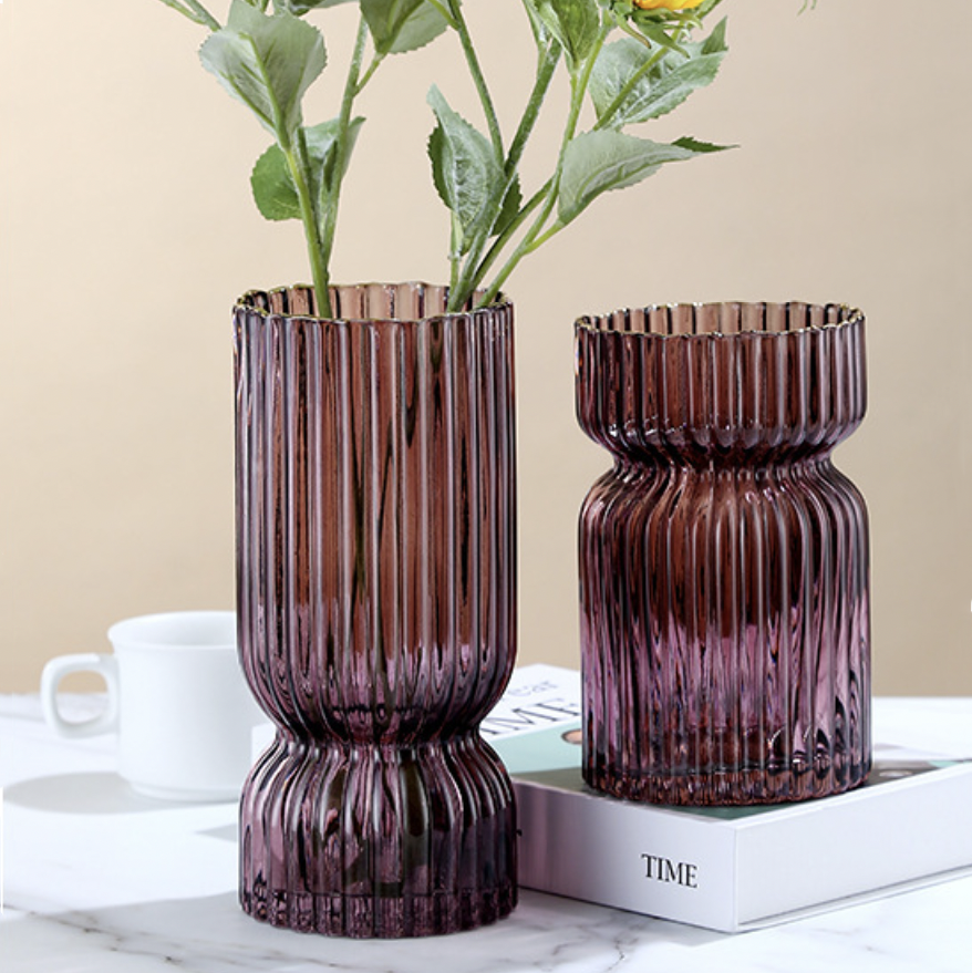 The textured trophy-shaped glass vase can be used to display artificial flowers, too. Its unique design adds visual interest and enhances the overall aesthetics, making it a versatile option for both real and artificial flowers.