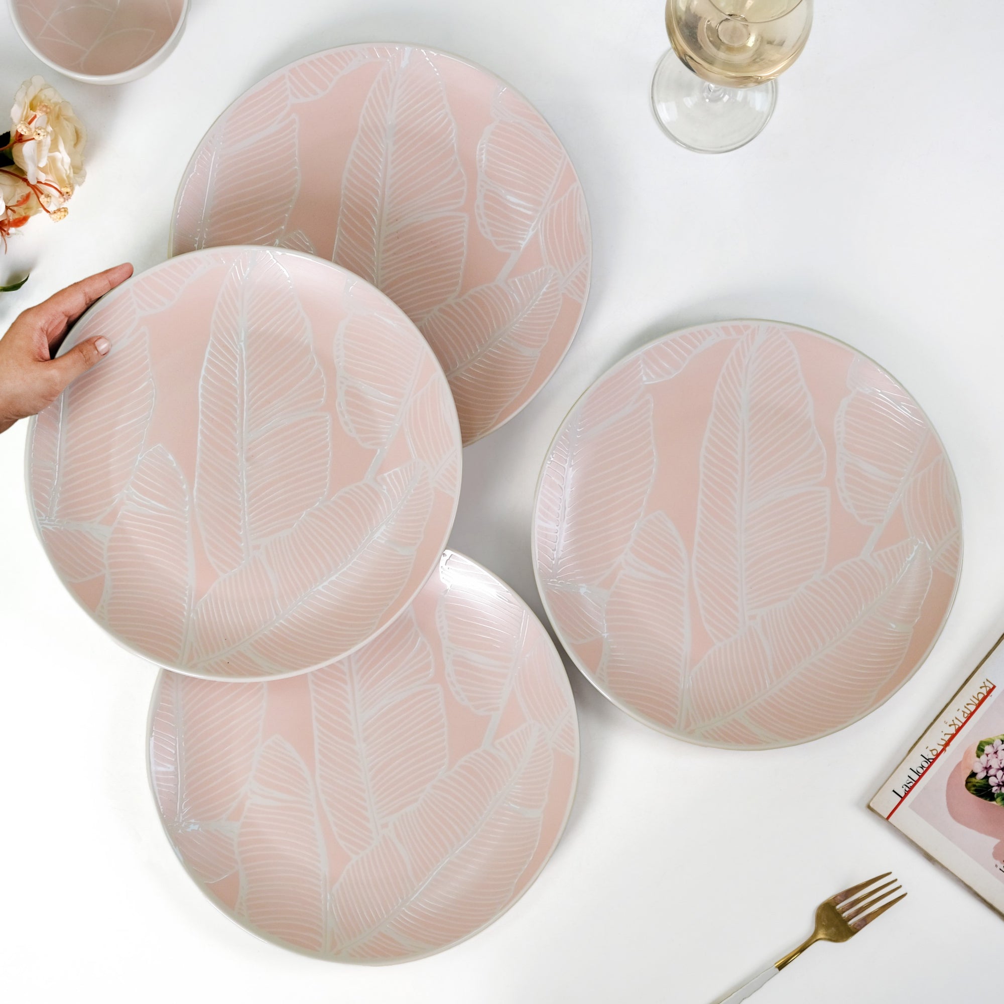 Tropica Pastel Pink Ceramic Dinner Plate Set Of 4 10 Inch