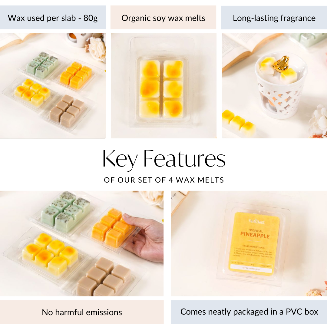 Certainly! These organic soy wax melts can be used for aromatherapy purposes. Each fragrance in the set - such as soothing frangipani, fresh spearmint, warm ginger, and sweet pineapple - offers unique therapeutic benefits.