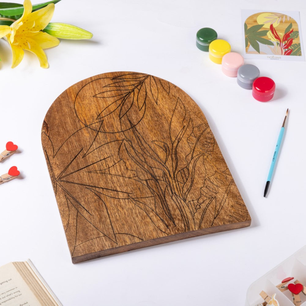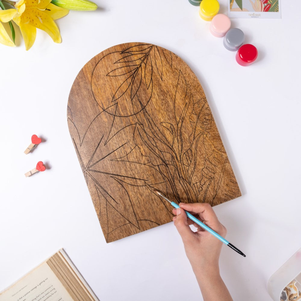 Bring out the artist in you with Nestasia's Tropical Flora DIY wooden painting kit, which includes an engraved mango wood panel, five acrylic colors, a paintbrush, and a manual with usage instructions. If you're a beginner looking for an ideal DIY painting kit, our wooden painting kit can be your reliable buddy. Create your artistic masterpiece, frame it on the walls of your living space, and set it on a shelf or a mantel top.