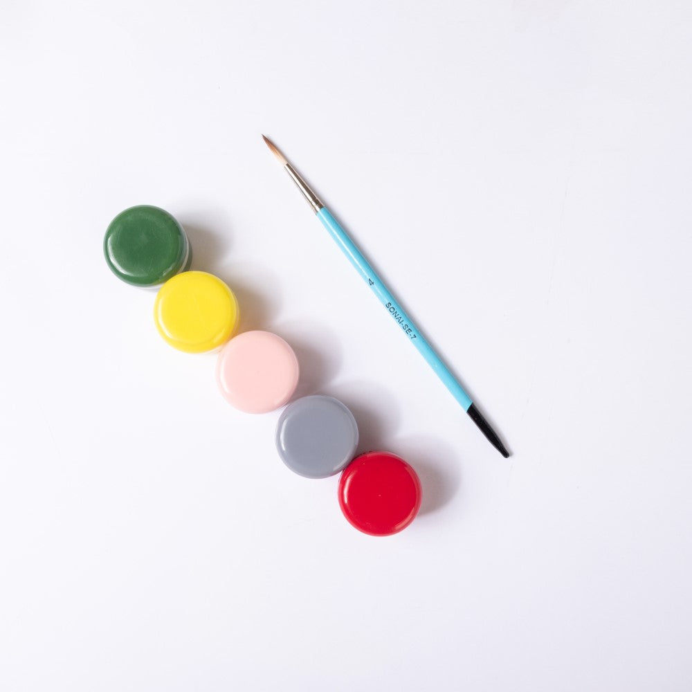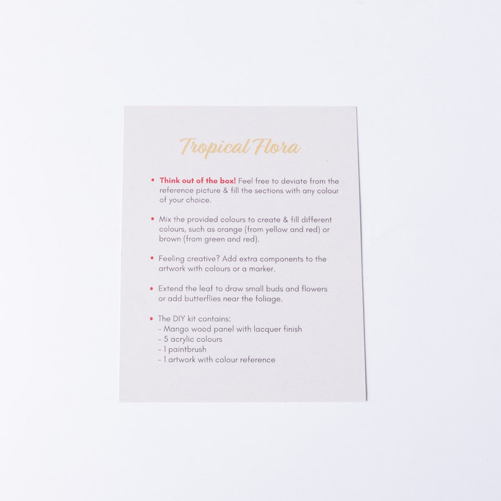 Our DIY painting package includes one mango wood panel, five acrylic colors, one paintbrush, and one piece of artwork with color references and instructions. It enables you to adorn the wooden object with your own unique artistic touches.