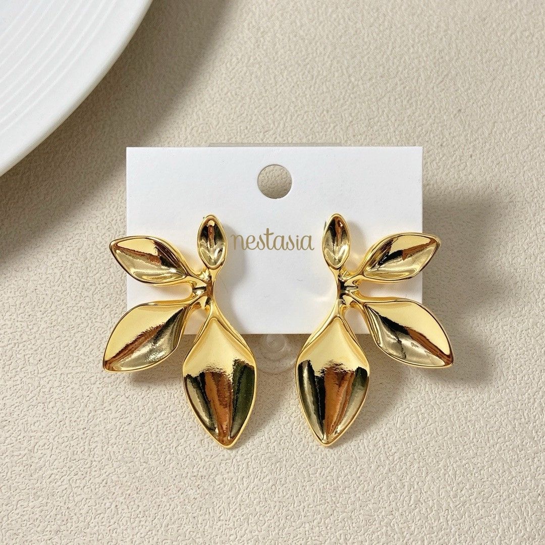 Timeless elegance meets nature's beauty with these stunning stud earrings. Inspired by the delicate branches and leaves that thrive in the quiet elegance of nature, these earrings bring a touch of the outdoors to your everyday look. The design features a finely crafted gold-toned branch, with each leaf intricately shaped to capture a sense of movement and life. Perfect for adding a soft yet sophisticated charm to any occasion, these earrings are a beautiful expression of nature’s grace.