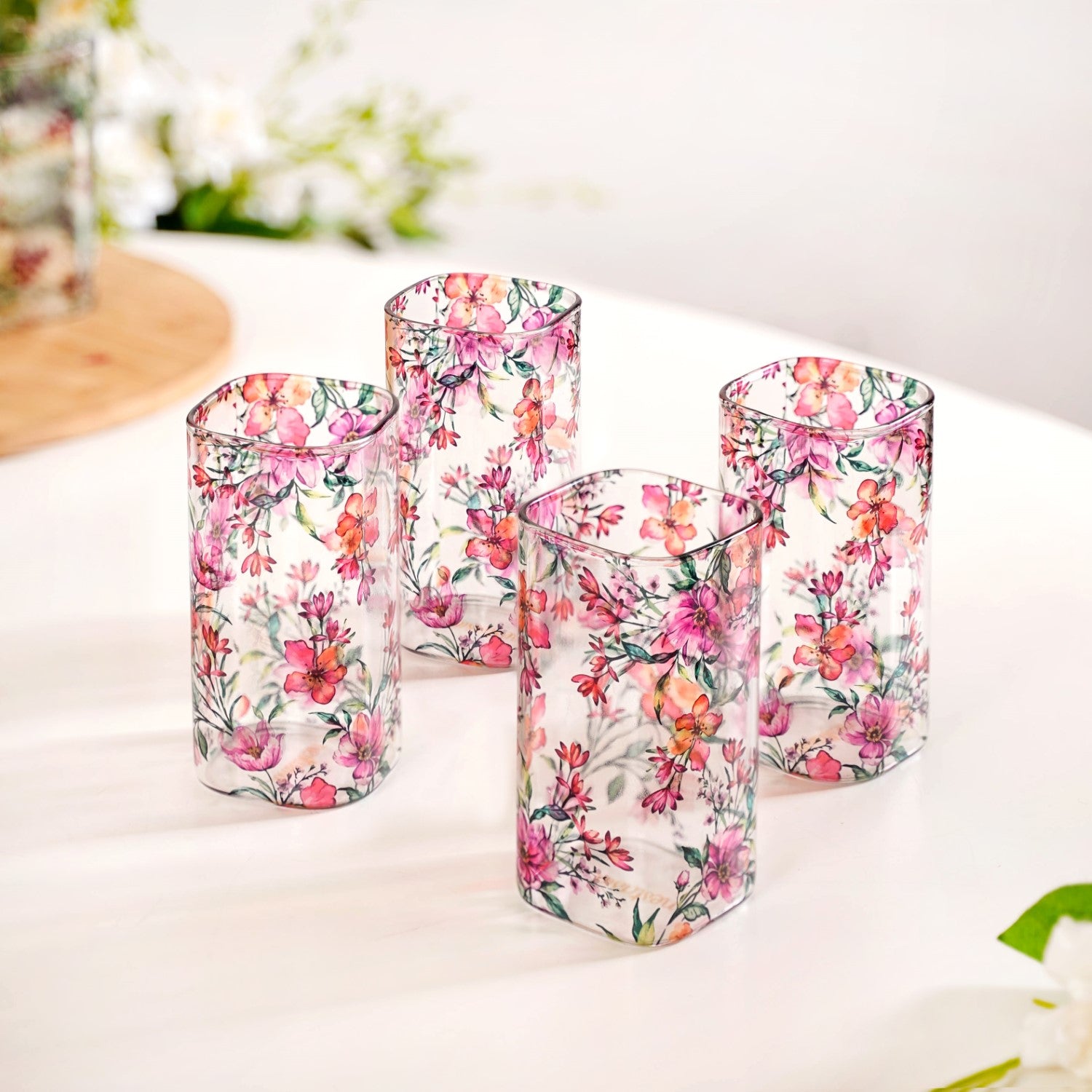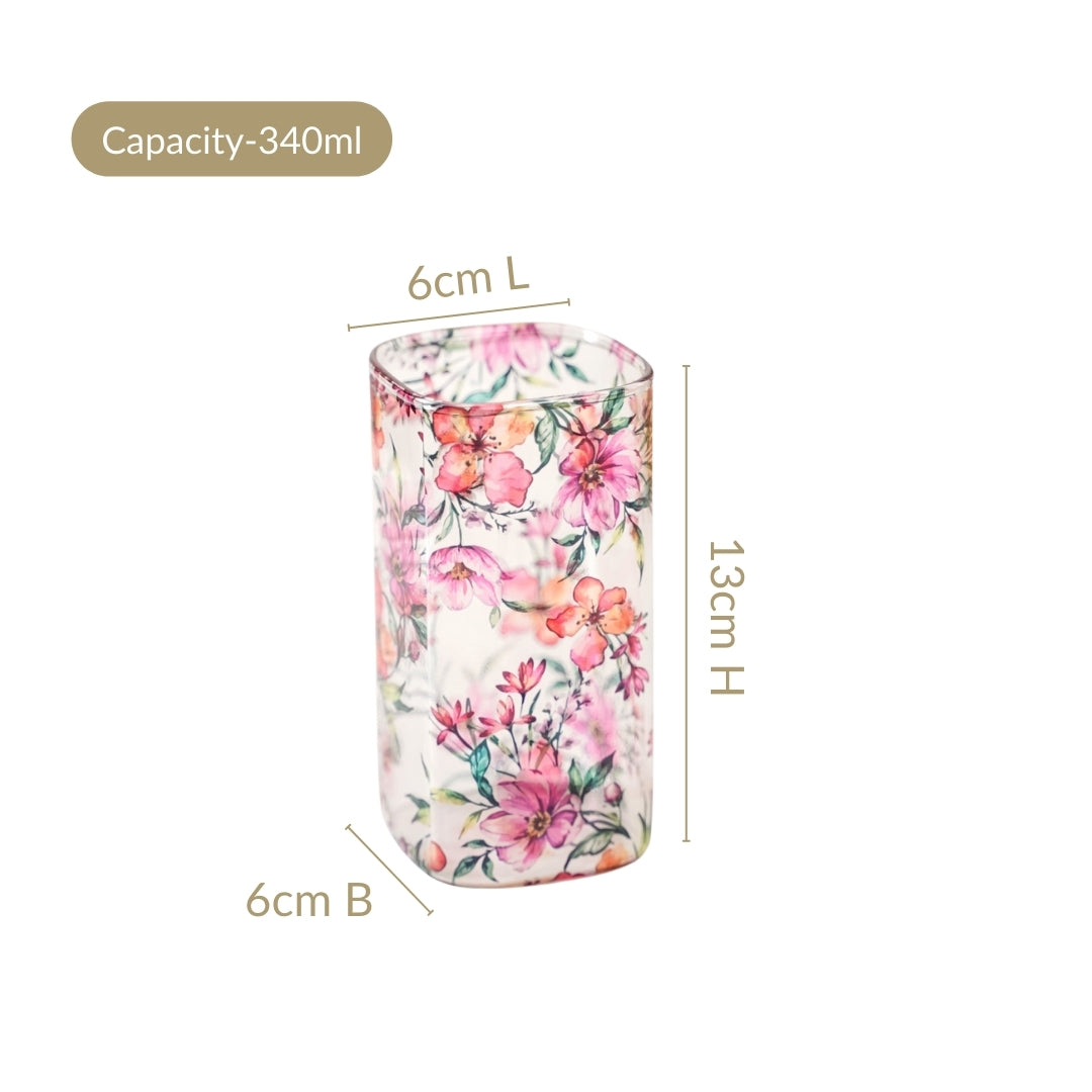Mini Chaurasia Tropical Hibiscus Borosilicate Glass Cocktail Tumblers Set Of 4 340ml